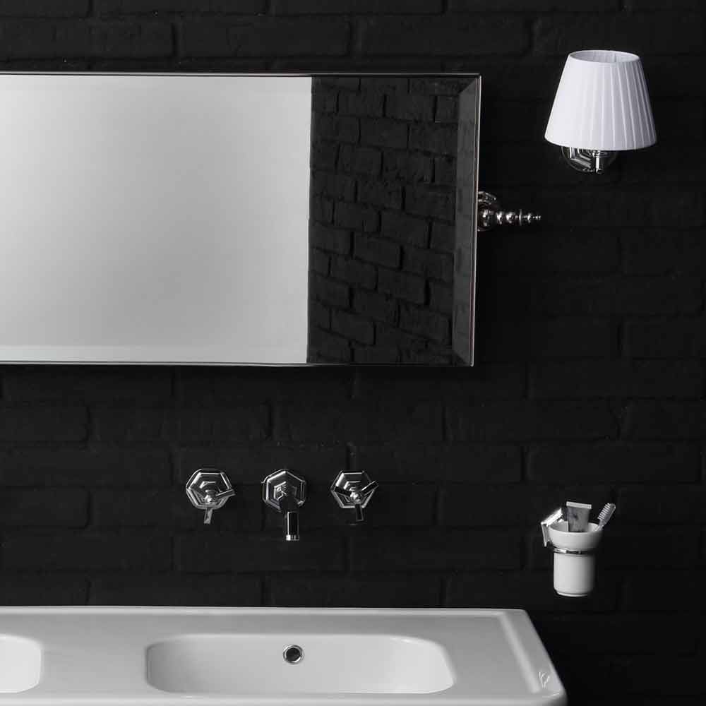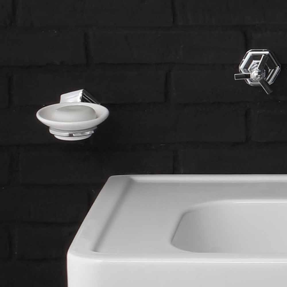 Consola doble sobre patas de cerámica al estilo del 900 'Serenity Serenity es una hermosa y fascinante composición de muebles de baño hecha completamente de cerámica blanca del estilo 900 '. Esta bella composición incluye un elegante y espacioso lavabo doble, fijado a la pared y sostenido por un par de patas, también de cerámica, todo ello formado por una elegante forma cuadrada. Para dar un toque de luz a toda la composición, incluye grifería, sifones y desagües todo en acabado cromado, además del bonito y espacioso espejo basculante rectangular con marco de latón cromado. La serenidad se completa y enriquece con la presencia de un hermoso y elegante jabonera de pared de cerámica con detalles cromados y un portacepillos de dientes en el mismo diseño, todo ello completado por dos hermosos apliques de lujo en latón cromado y pantalla de algodón. Serenity está diseñado para aportar un toque de diseño estilo 900 'a tu hogar, manteniendo siempre una cierta modernidad y elegancia. Compuesto por elegantes líneas cuadradas, Serenity se integra armoniosamente en cualquier tipo de mueble. ¡Dale un toque de estilo a tu hogar también! ¡Lavabo fijado a la pared con los soportes suministrados!