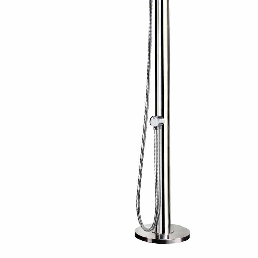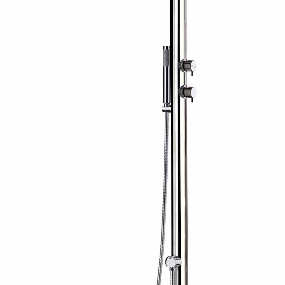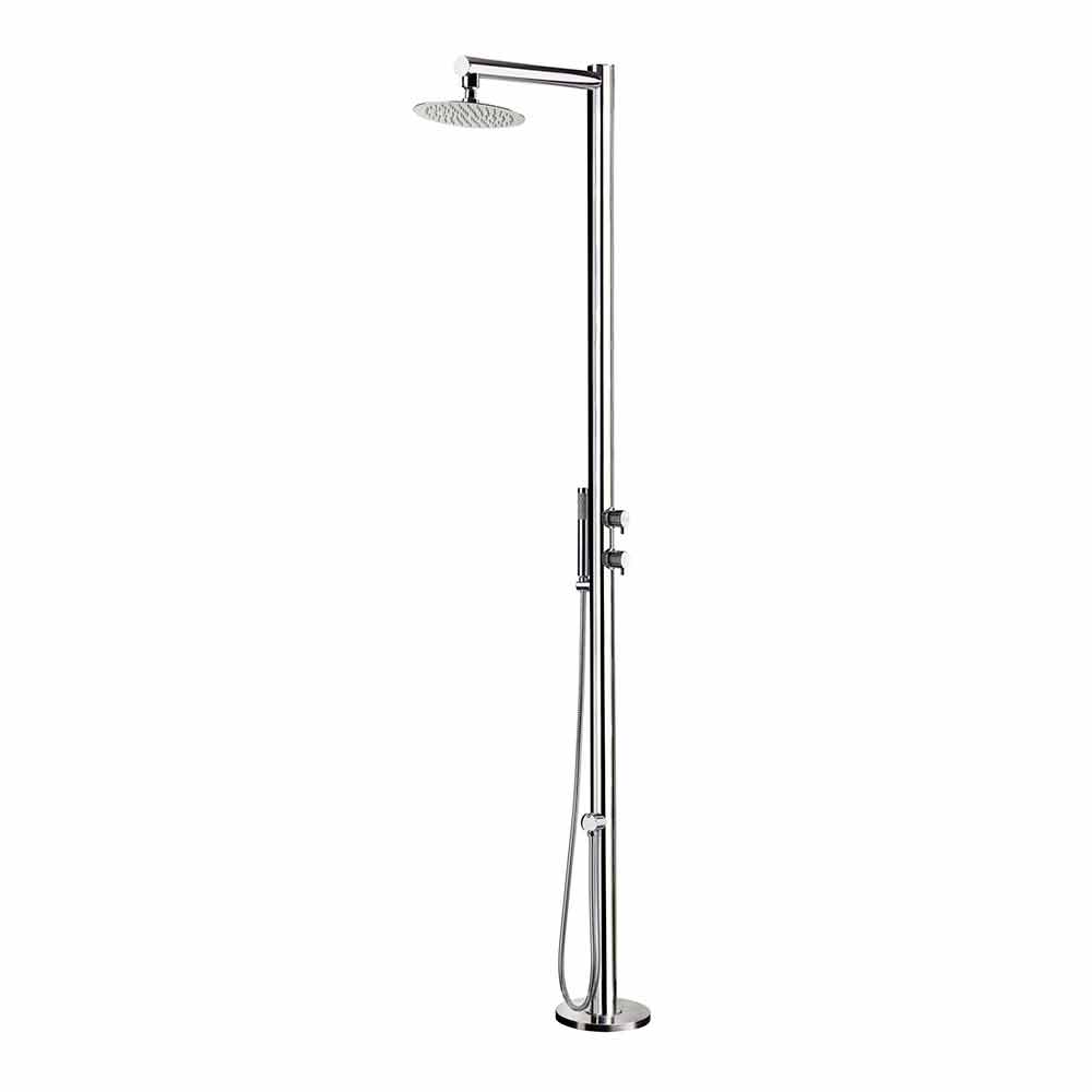 Ducha exterior agua fría/caliente en acero inox. con acabado pulido y ducha de mano Made in Italy.