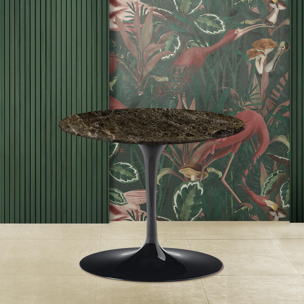 Mesa de centro redonda fabricada en Italia con tapa de mármol emperador oscuro y base de aluminio pulido . Este producto responde perfectamente a las exigencias de sencillez y elegancia que cualquier estilo de decoración requiere gracias a sus acabados lineales y refinados . El mármol Emperador oscuro es uno de los mármoles más preciados y aporta a la mesa de centro ese toque nuevo y original que la hace apta para cualquier ocasión de uso. Los materiales utilizados para la construcción garantizan la calidad y resistencia de este complemento de decoración incluso con el paso del tiempo. Este elemento es excelente para completar con gusto y refinamiento cualquier salón de la casa, dando a la estancia un alma particular y delicada gracias a su estructura simple y lineal.