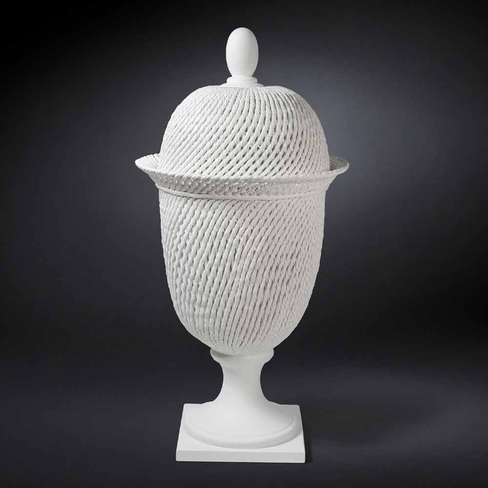 Jarrón alto artesanal para interiores en cerámica blanca Made in Italy.
