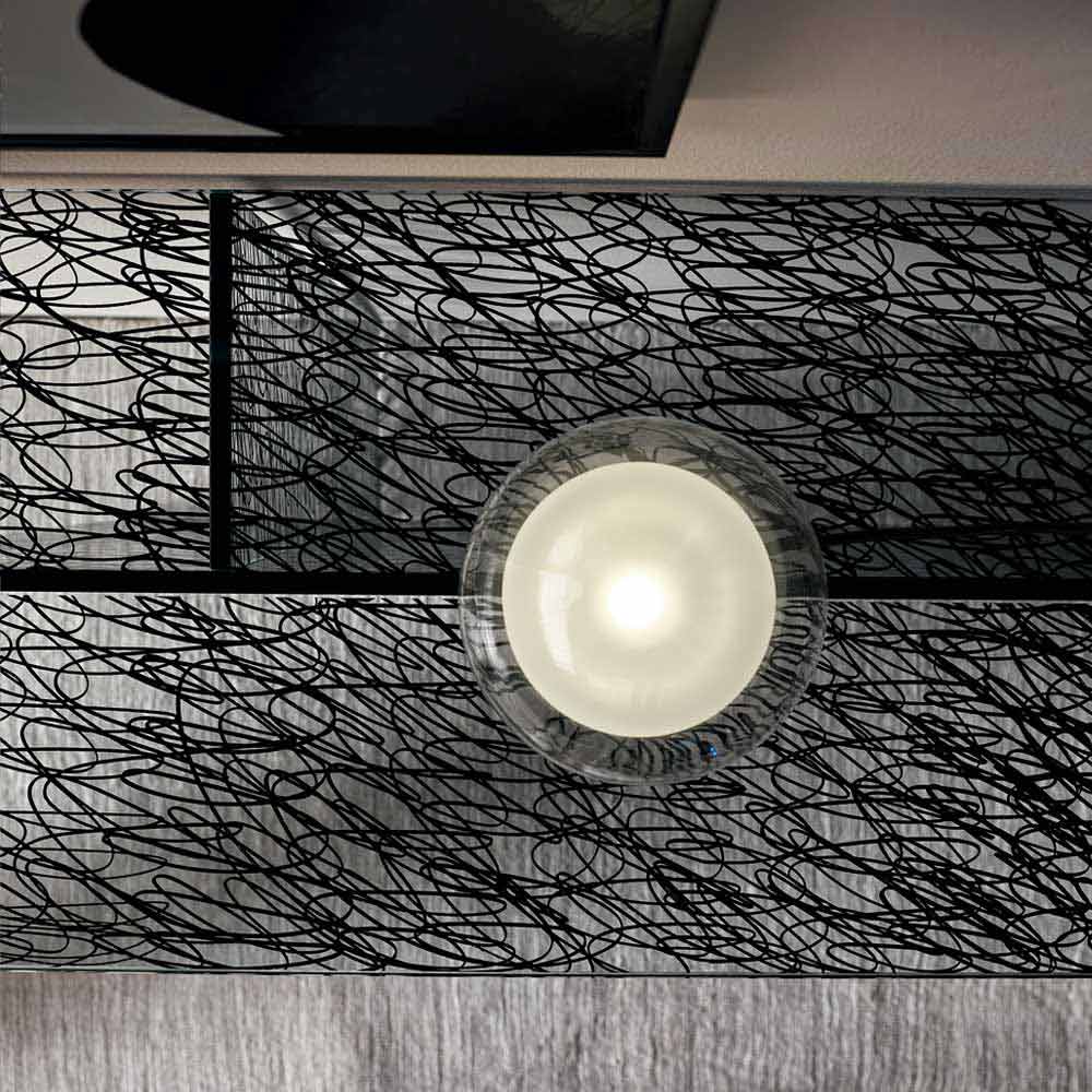 Totalmente realizado en vidrio trasparente decorado con impresión digital (espesor 12 mm).