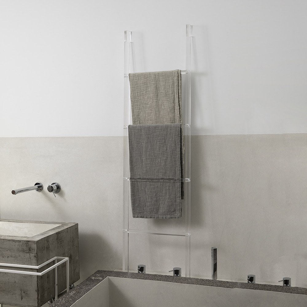 Escalera para toallas de baño en cristal acrílico transparente, 2 medidas made in Italy.