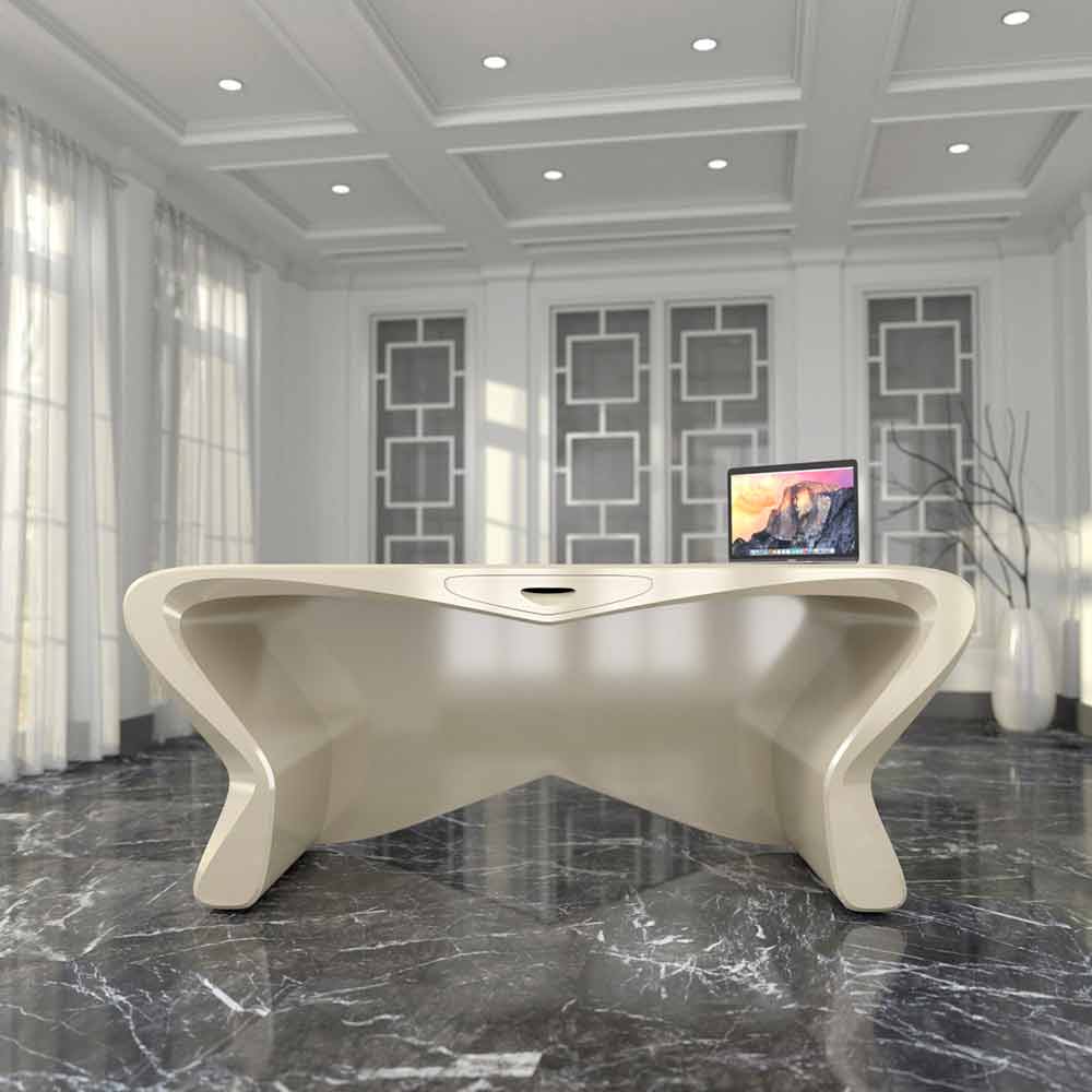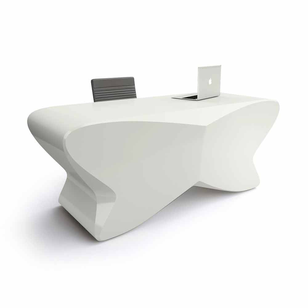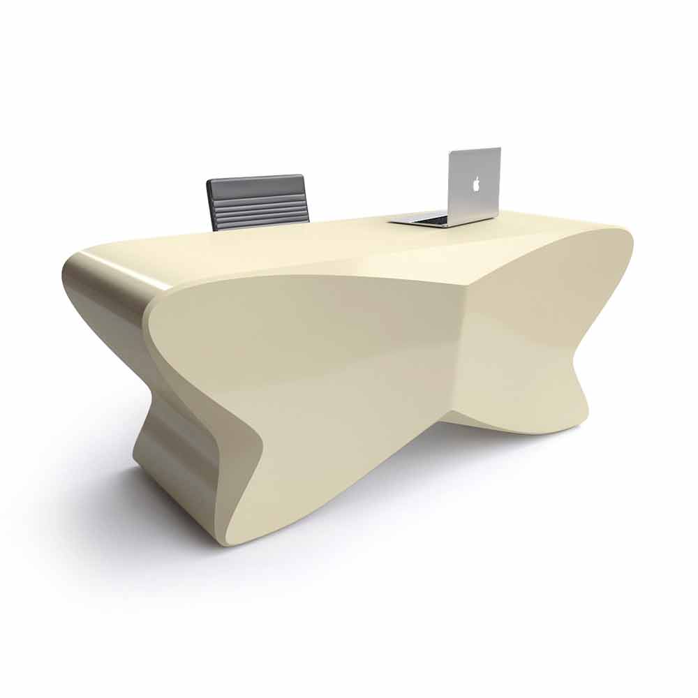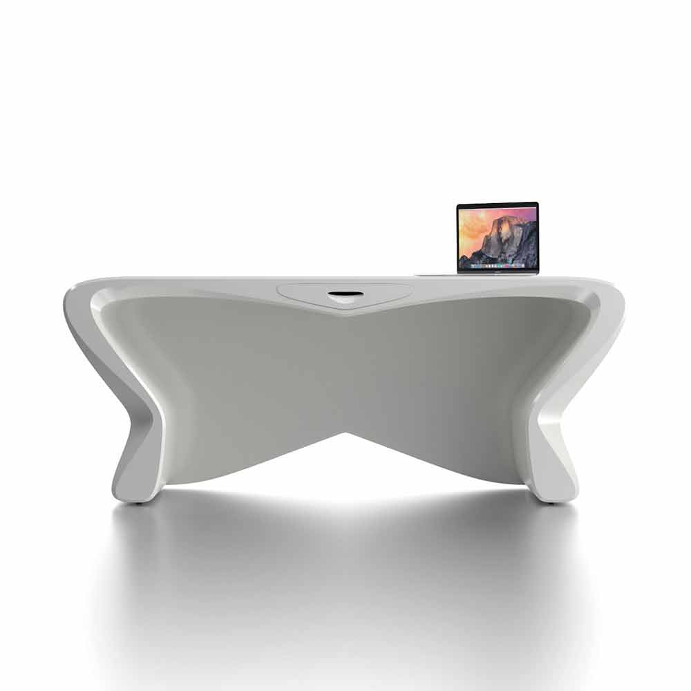 Escritorio de oficina de diseño moderno hecho en Italia, Popoli Popoli es un fantástico escritorio de estudio fabricado en Solid Surface® e inspirado en las formas de una mariposa. Gracias a su diseño ligero y moderno y a sus formas majestuosas, será perfecto para decorar todos tus ambientes contract con alegría e innovación.
