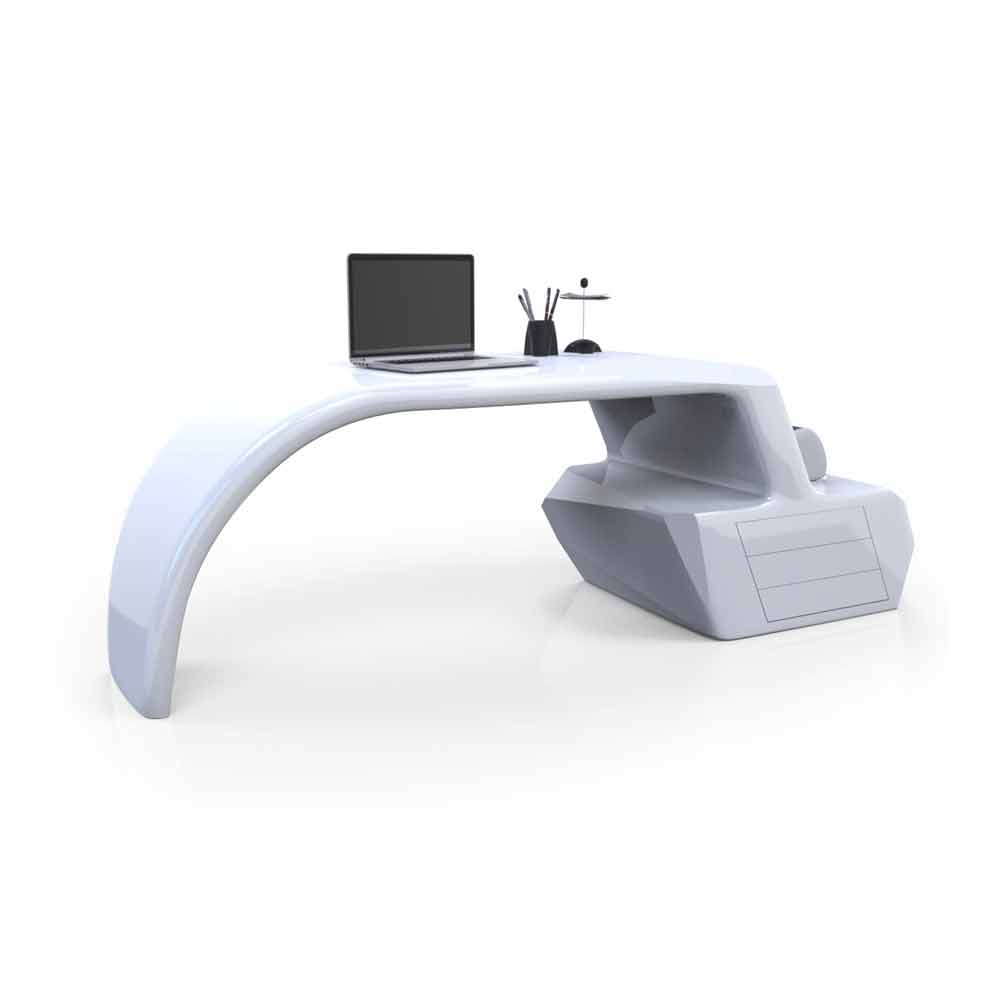 El escritorio Gush nace del encuentro entre lenguajes formales aparentemente distantes. Así como un chorro de agua de manantial brota de la roca, nuestro escritorio reúne códigos estilísticos divergentes: sólido versus líquido para realzar plenamente las características del Solid Surface, el material del que está hecho. Escritorio disponible en dos variantes de color: Blanco (RAL9003) o Negro (RAL9005).