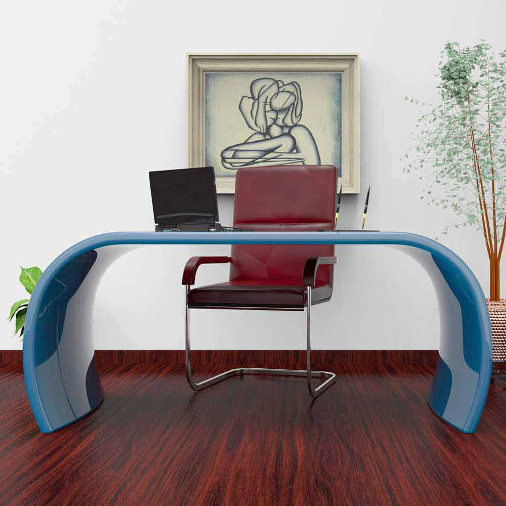 Mesa de gerente. Material: Superficie sólida; Una forma sinuosa, casi como una ola, se convierte en parte de la vida laboral cotidiana. Este escritorio, fabricado en Solid Surface, gracias a su forma curva rompe la monotomía de la oficina brindándonos un ambiente moderno y amigable. Sus colores vivos hacen que combine bien con cualquier tipo de ambiente, dotándolo de gusto. Acabado exterior lacado mate, acabado interior lacado brillante. Disponible en diferentes variaciones de color.