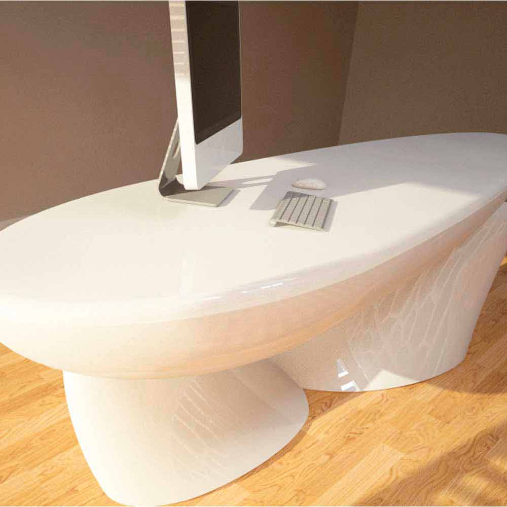 Hecho a mano en Italia. Material: Superficie sólida; Hermoso escritorio en Solid Surface; hecho completamente a mano. De formas sinuosas y al mismo tiempo decididas e importantes, la sofstone representa 3 enormes piedras apoyadas sobre sí mismas que dan vida a una mesa de oficina. Para diferenciarse de sus colegas, esta es la oportunidad adecuada. Disponible en diferentes variaciones de color.