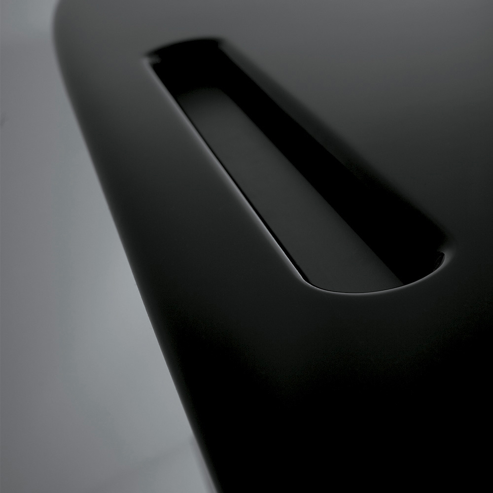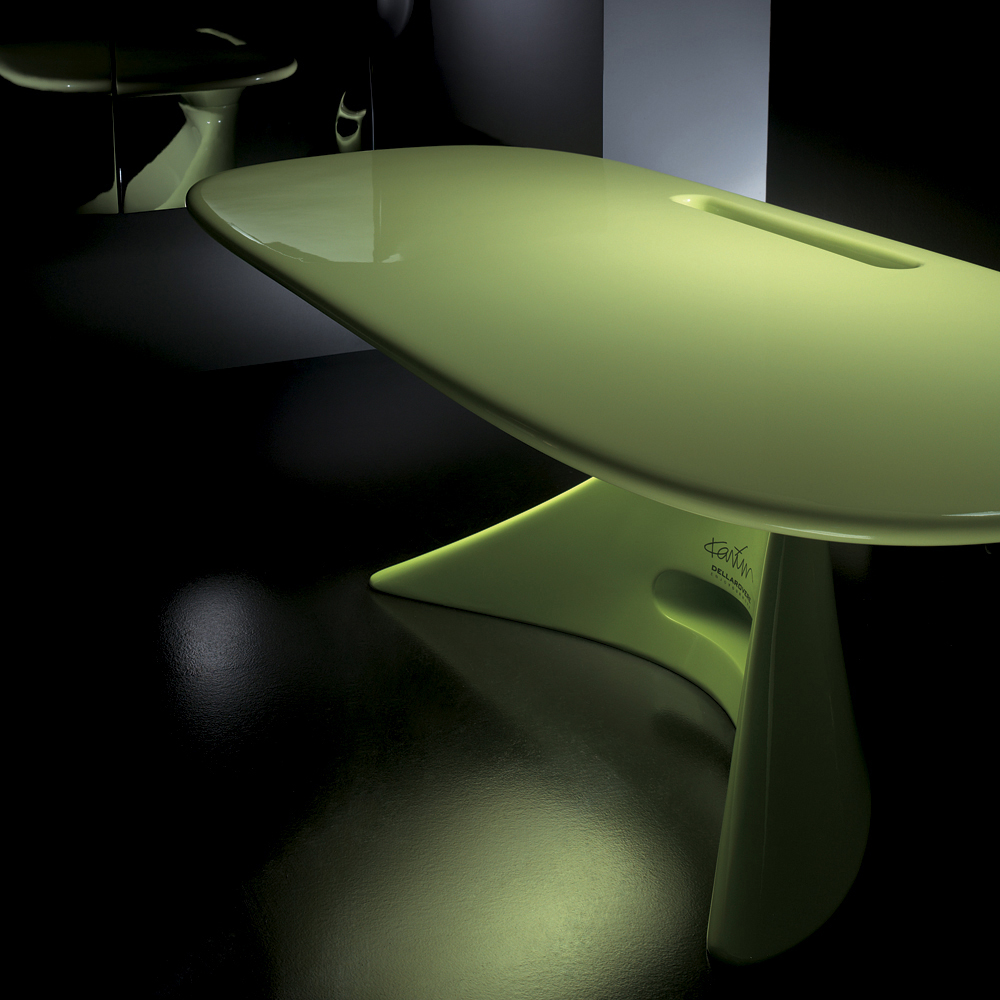 Este escritorio presenta un cuerpo autoportante, realizado mediante moldeo de resinas termoendurecibles y reforzado con fibra de vidrio.