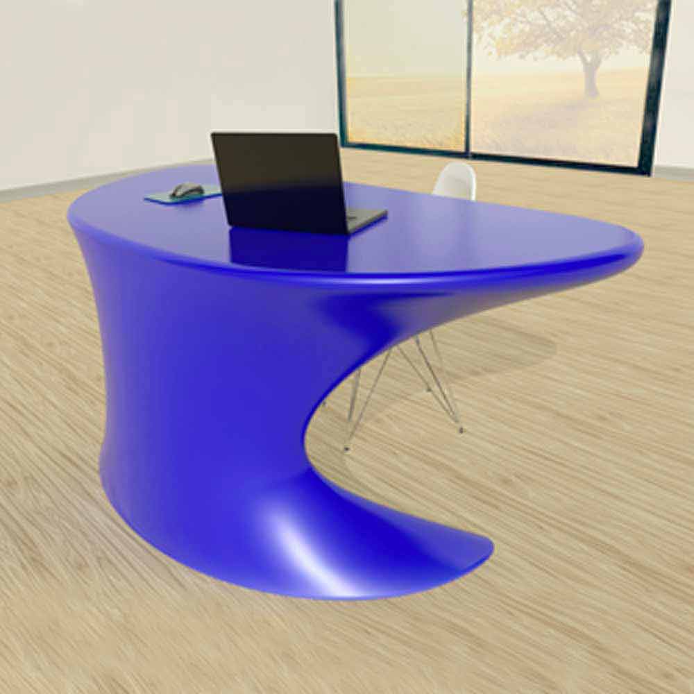 Suave y Sinuoso. Material: Superficie sólida; Líneas suaves y sinuosas son las características distintivas de este escritorio de forma atractiva y decidida. Un diseño envolvente y una gran superficie de trabajo al servicio de quienes quieren trabajar con total comodidad sin renunciar al estilo y la elegancia. La estructura monolítica combinada con las características de resistencia del material y el tratamiento superficial antirayaduras garantizan su solidez y funcionalidad. Personalizable en color, se puede colocar fácilmente en múltiples ambientes como estudios, oficinas, tiendas. Acabado brillante. Disponible en diferentes variaciones de color.