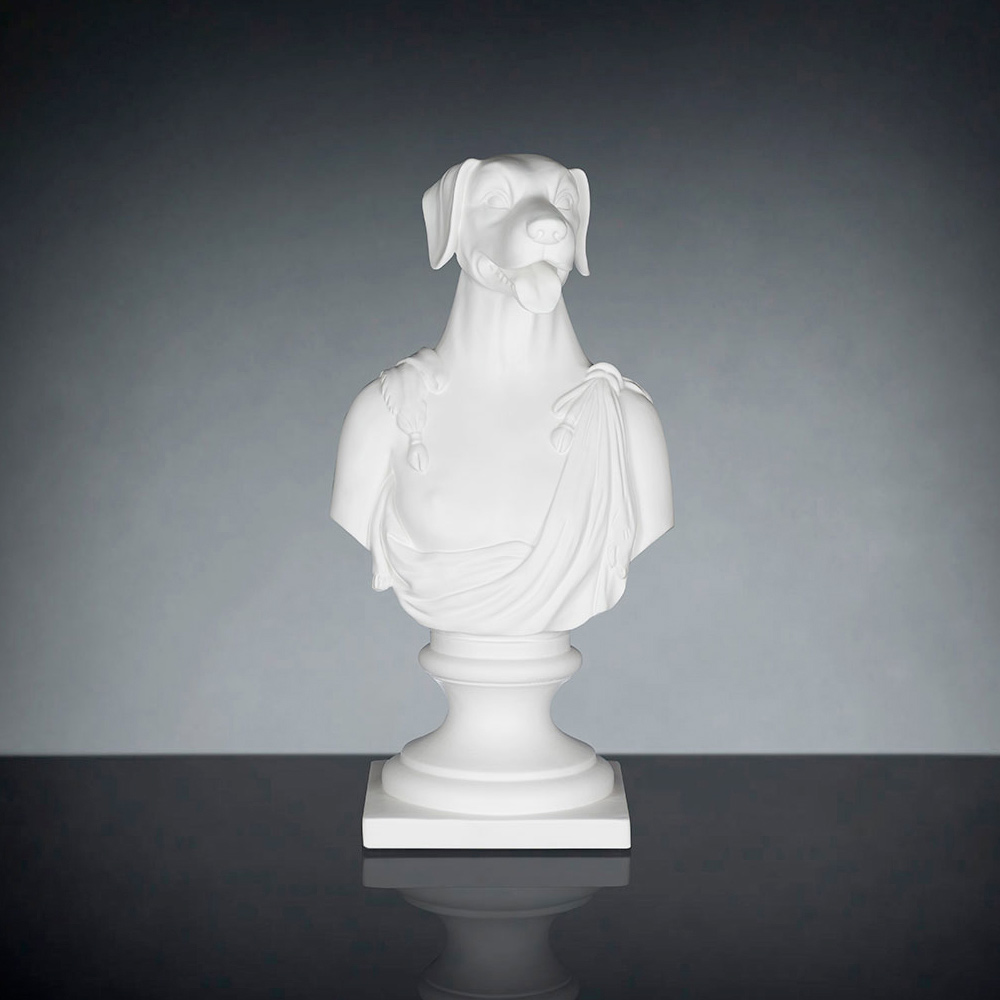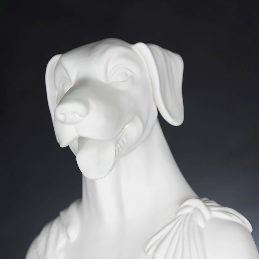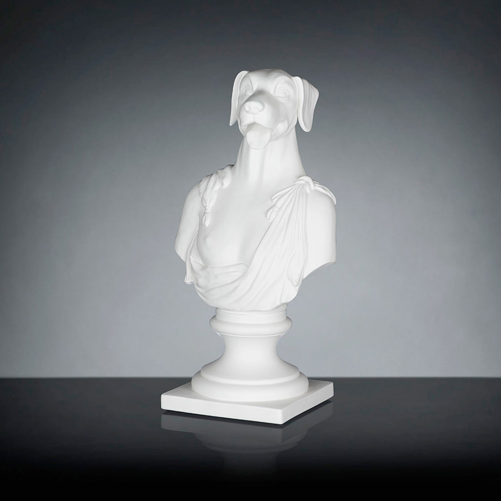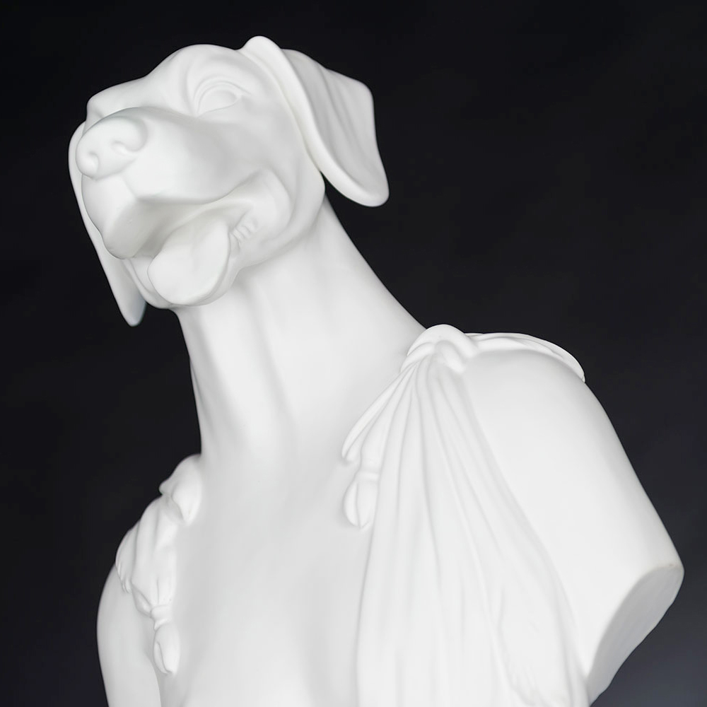 Escultura decorativa de cerámica realizada artesanalmente por artesanos italianos que representa a Argos, el perro de Ulises.