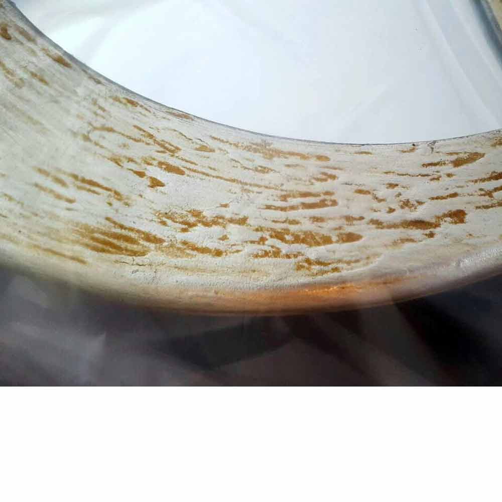 Espejo MDF perfilado con adornos de matérico sobre hoja de plata.