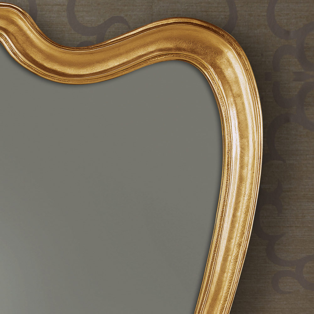 Espejo perfilado con marco de madera decorado con pan de oro . Gracias a su estilo clásico , este espejo es ideal para dar un toque elegante y lujoso a cualquier ambiente. Un complemento único y refinado, realizado íntegramente en Italia por expertos maestros artesanos , maestros del arte que terminan cada complemento con sabiduría y gusto por la elegancia. La producción se lleva a cabo utilizando materiales nobles y realizando el trabajoamano con el máximo cuidado y profesionalismo que distingue a los productos Made in Italy .