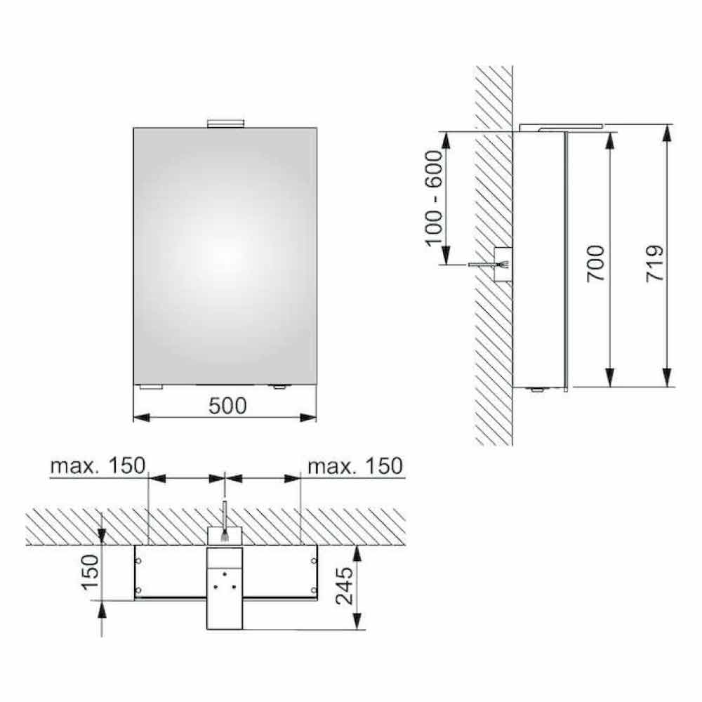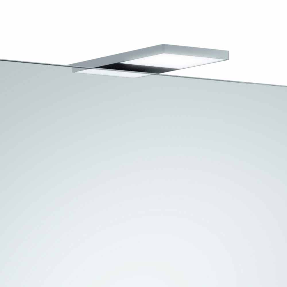 Espejo contenedor con puerta batiente de un espejo (también interior) y espejos laterales equipados con iluminación LED.