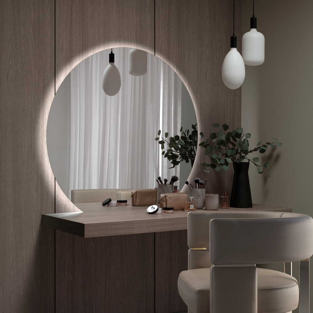 Este espejo circular es una obra maestra del diseño que encarna elegancia y modernidad. La retroiluminación que sigue su perfil aporta un brillo etéreo y una luz suave que realza cada ambiente, creando una atmósfera íntima y refinada. La forma redonda del espejo, una elección de estilo atemporal, refleja y amplifica la luz natural y la belleza del espacio circundante. Perfecto para la entrada, el baño o como punto focal en un salón, este espejo retroiluminado no es sólo un elemento reflectante, sino un auténtico objeto de decoración que combina forma y función, belleza y luminosidad, para un resultado de puro estilo y atmósfera. .