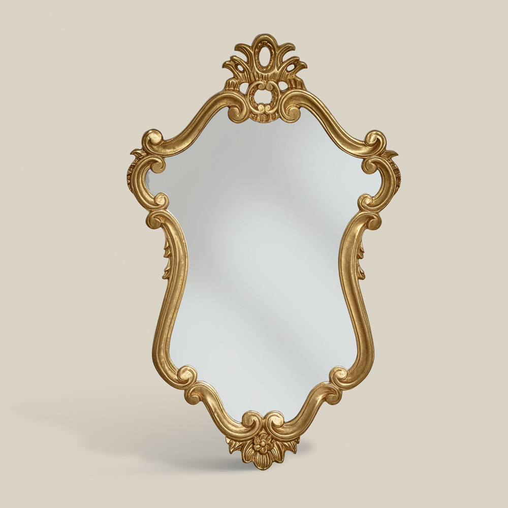 Espejo con forma de lujo con marco de pan de oro Made in Italy.