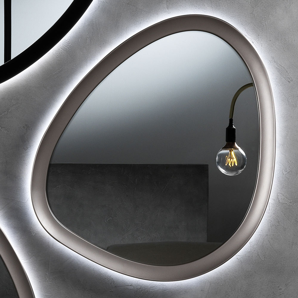 La retroiluminación no es sólo un detalle estético, sino también una fuente de luz ambiental que aporta profundidad y calidez al ambiente, creando una atmósfera acogedora y relajante. Este espejo es perfecto para quienes quieren añadir un toque de diseño único y personal a su hogar, combinando belleza y funcionalidad de forma sublime.