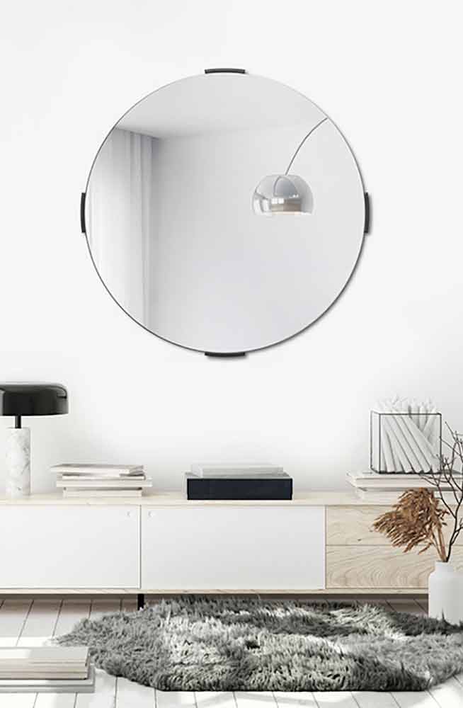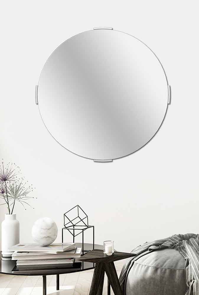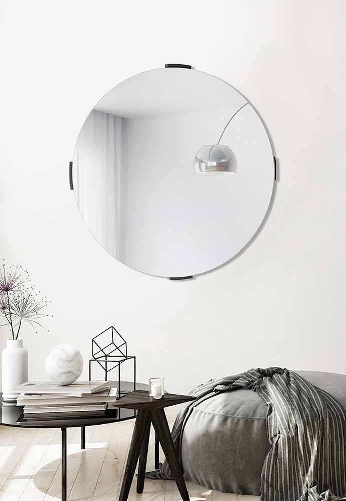 Espejo de pared moderno y redondo en voladizo de diseño minimalista fabricado en Italia.