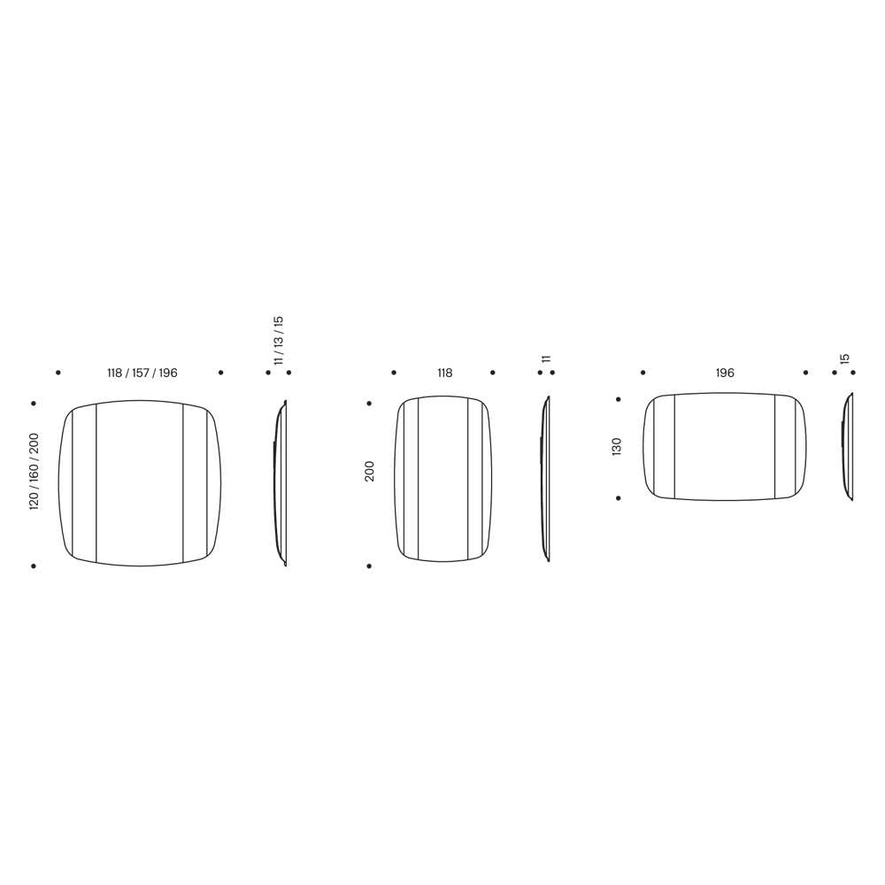 Largo 196cm x Fondo 15cm x Alto 130cm