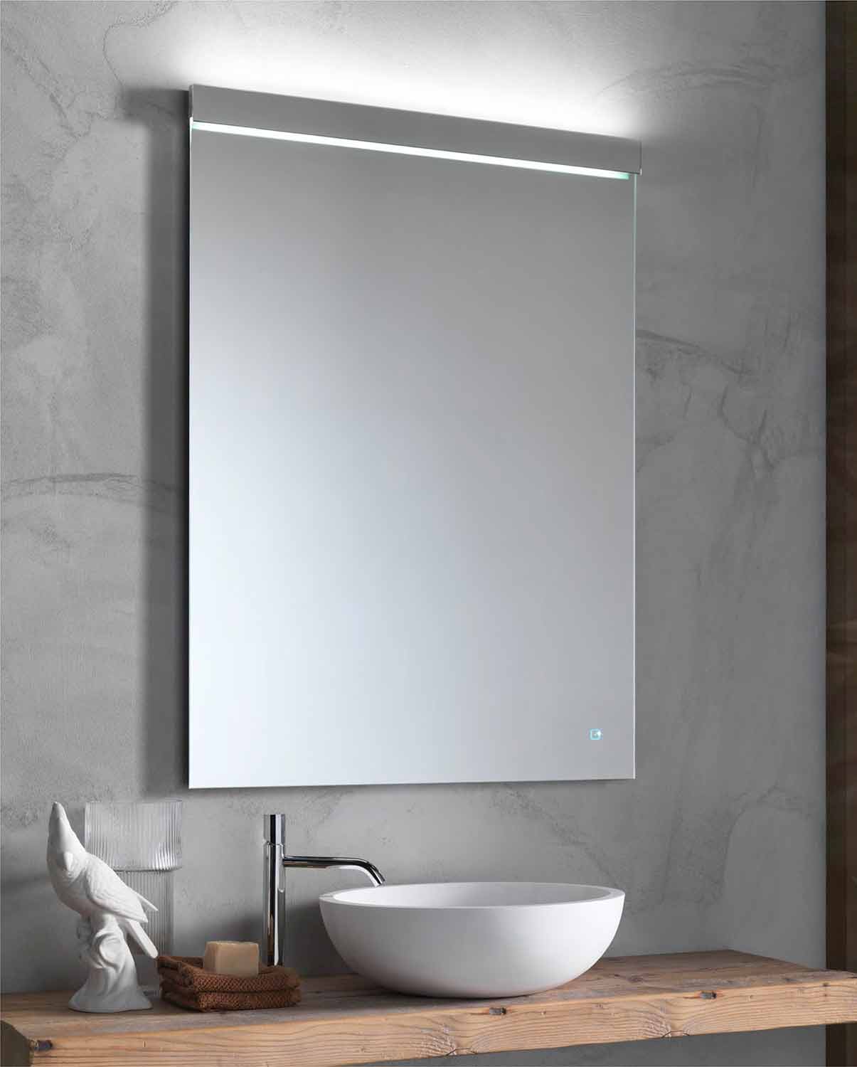Espejo hecho a mano en Italia . Caracterizado por la lámpara integrada con luz LED arriba / abajo disponible en dos variantes, también está equipado con un interruptor táctil y un marco de acero inoxidable. Ideal para completar muebles de diseño, aportando modernidad e innovación a cada espacio de baño.