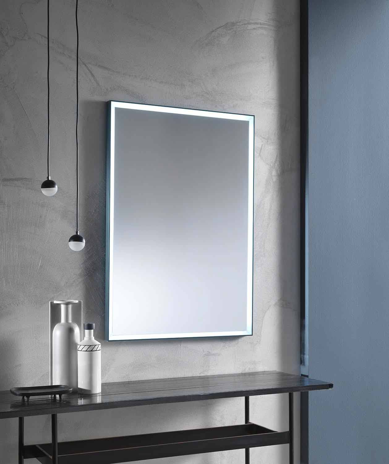 Espejo de pared hecho a mano y totalmente Made in Italy . Caracterizado por la luz LED disponible en dos variantes y la posibilidad de ser instalada tanto en horizontal como en vertical. Marco exterior de aluminio. Perfecta para adaptarse a cada necesidad e ideal para completar muebles de diseño, dando carácter y modernidad a cada espacio de baño.