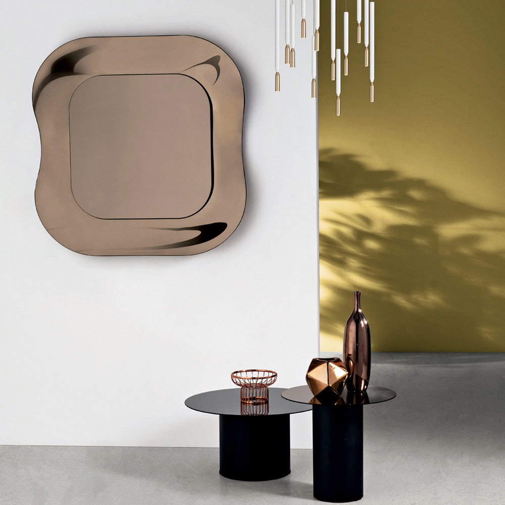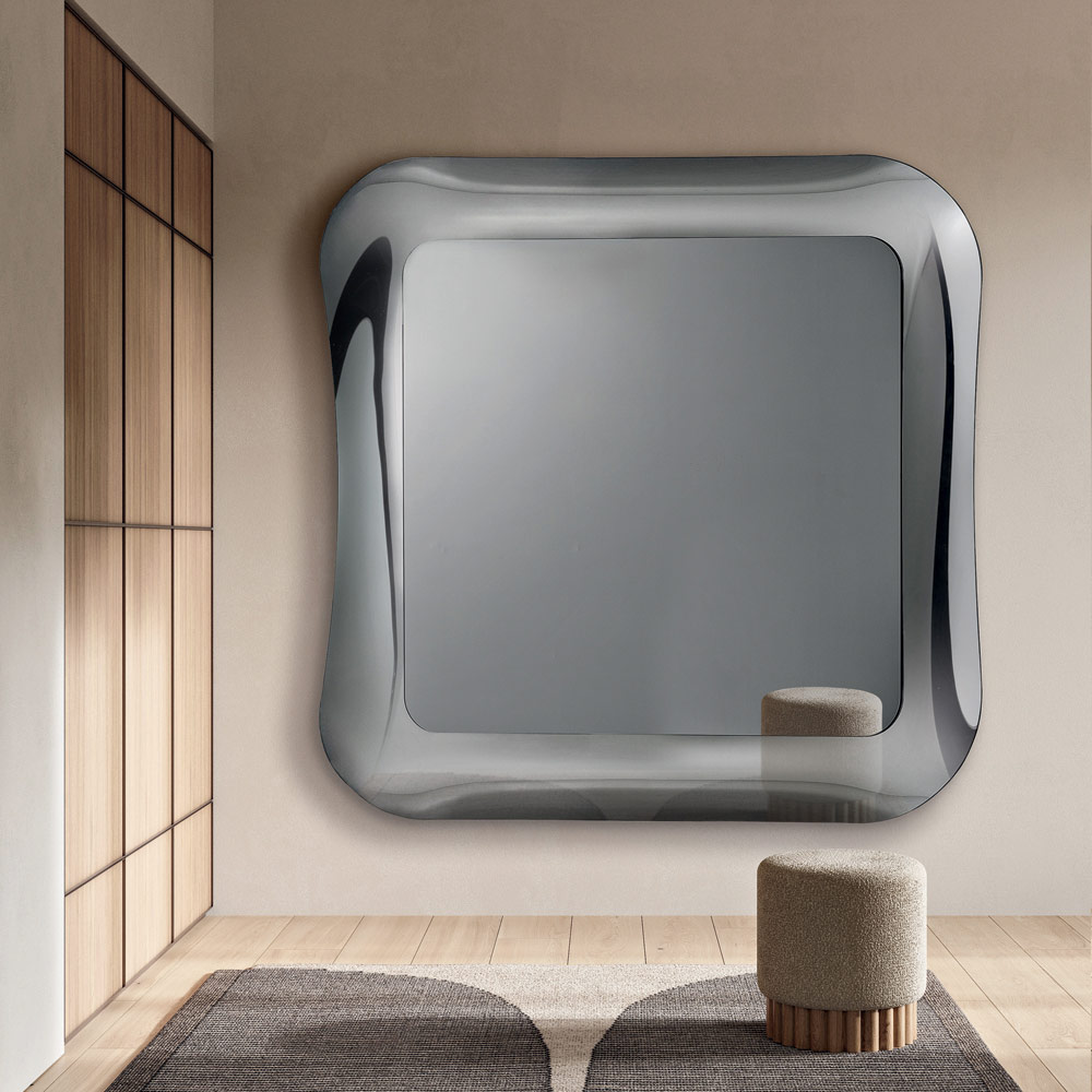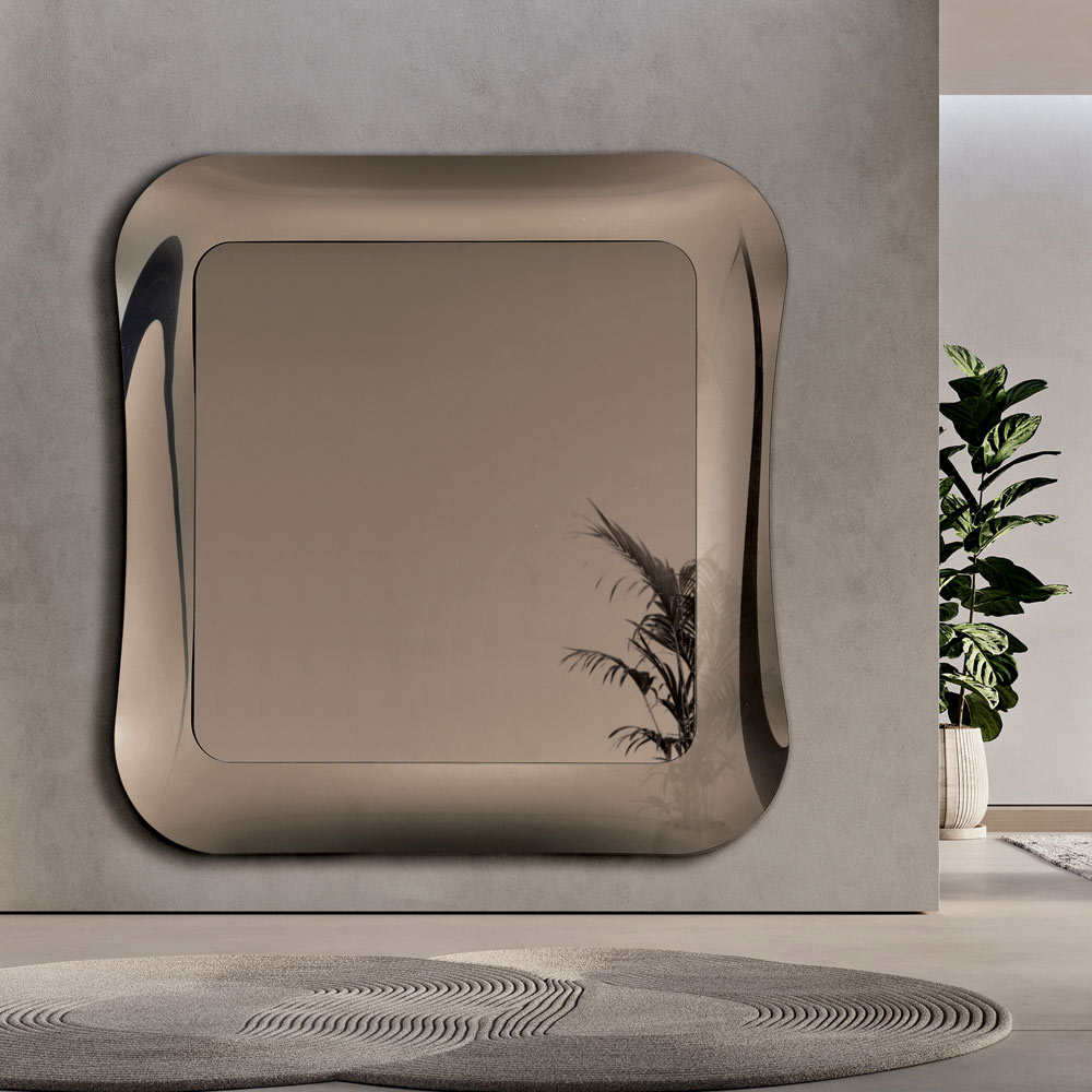 Un elegante espejo de pared diseñado en Italia , ideal para realzar espacios como la entrada , el salón o el dormitorio . Su refinado diseño combina líneas depuradas y detalles texturizados, transformando la pared en un elemento impactante capaz de enriquecer elegantemente el ambiente.