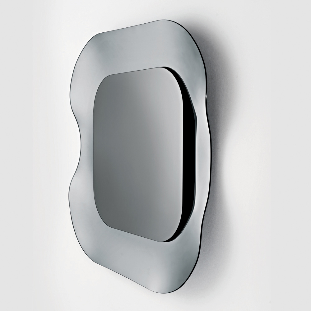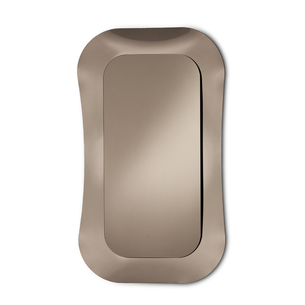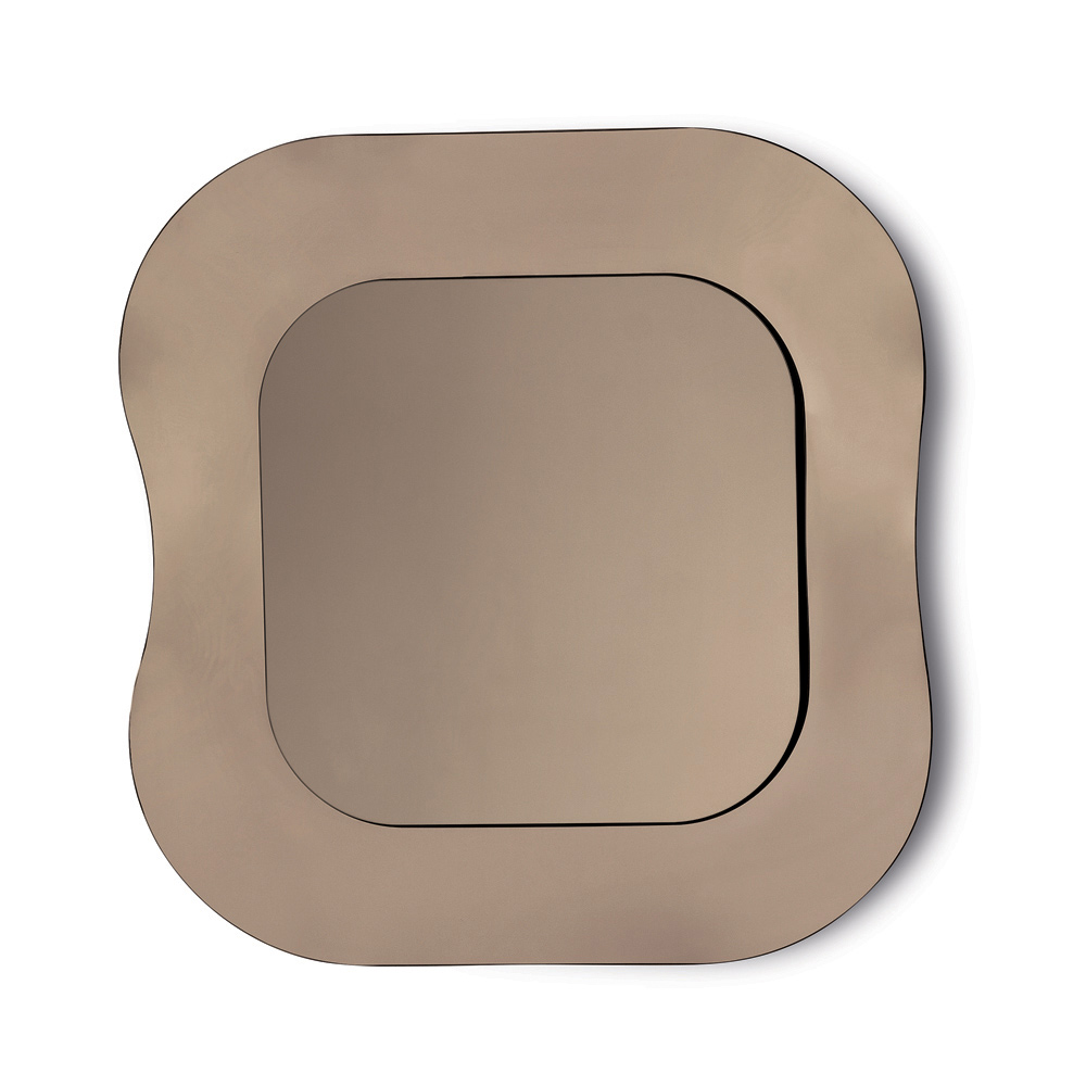 El espejo central , que descansa sobre el marco como un elemento ligeramente suspendido, aporta profundidad a la composición y acentúa el equilibrio entre la superficie reflectante y la estructura decorativa. El resultado es un sofisticado accesorio de decoración, perfecto para espacios modernos y refinados.