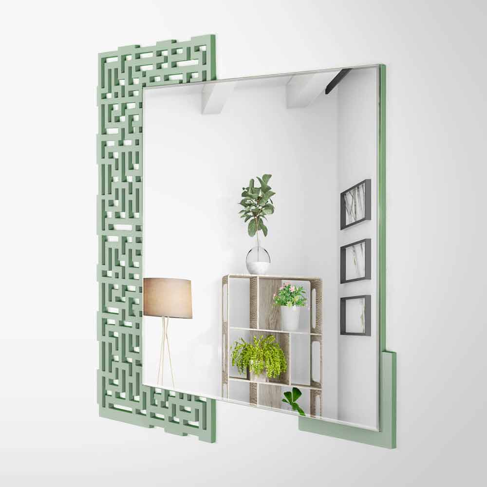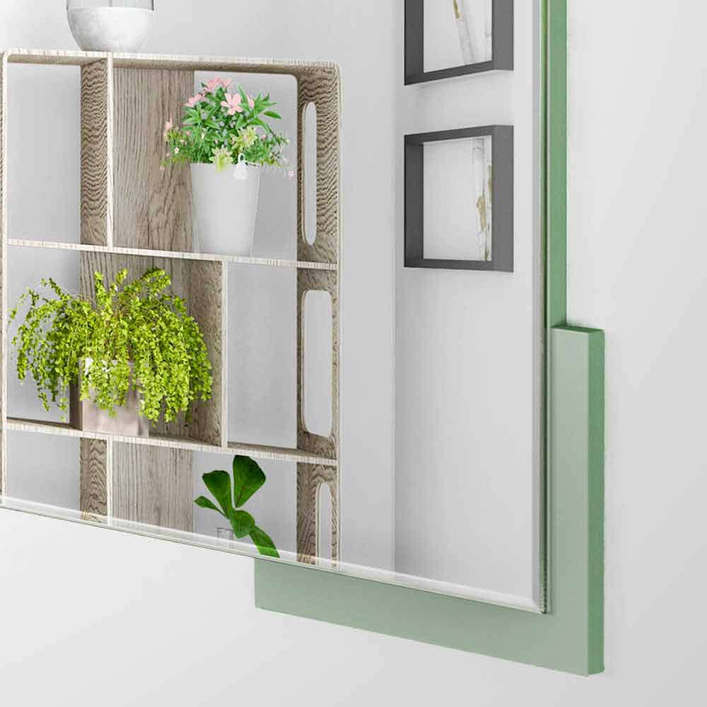 Espejo de pared moderno, diseño geométrico cuadrado, en madera de color verde y hecho en Italia.
