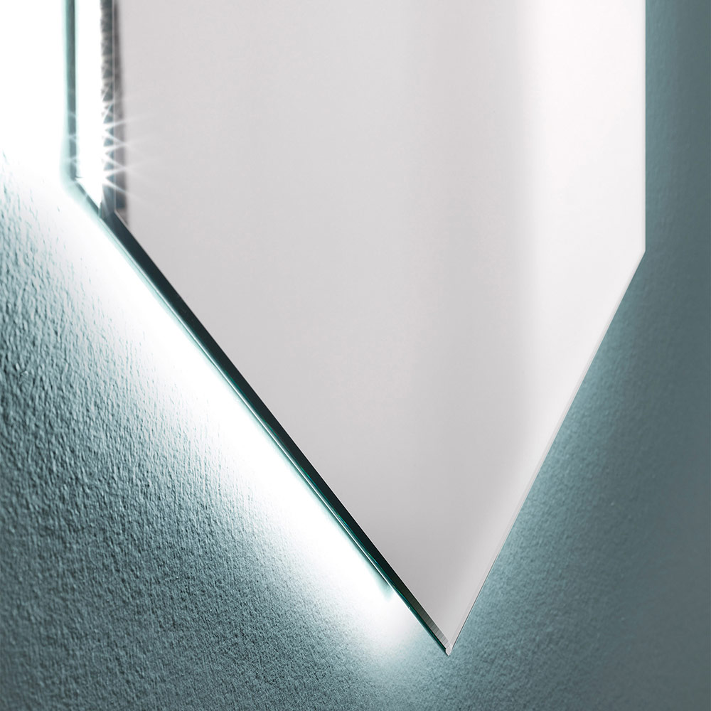Este espejo de pared se caracteriza por la forma particular y moderna en forma de hexágono con bordes rectificados, lo que garantiza un diseño extremadamente refinado y elegante. Ideal para modernizar el baño en lugar de la entrada o el dormitorio, el artículo se completa con la retroiluminación LED integrada de 4000k para ambientes únicos y relajantes.