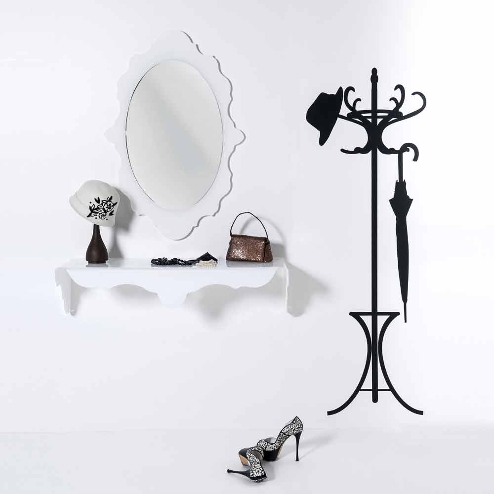 Espejo de pared de diseño blanco Marco de alegría decorado, hecho en Italia