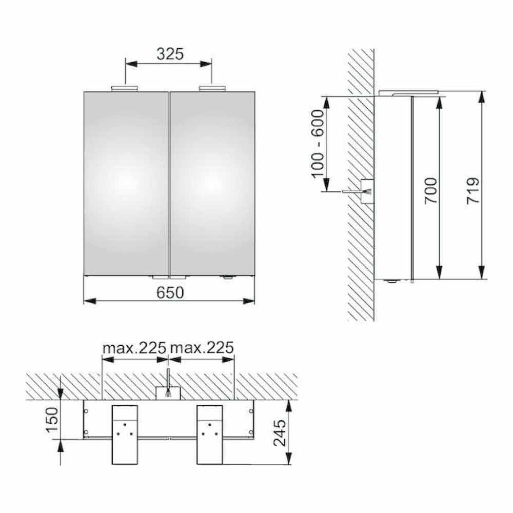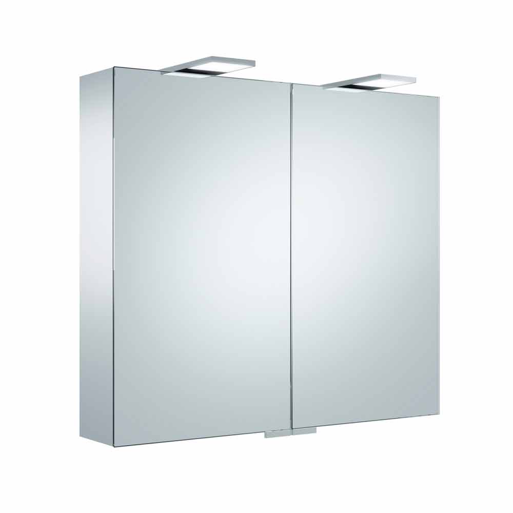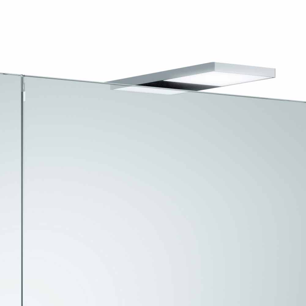 Espejo contenedor con 2 puertas batientes espejadas (también internas) y retrovisores laterales equipados con iluminación LED.