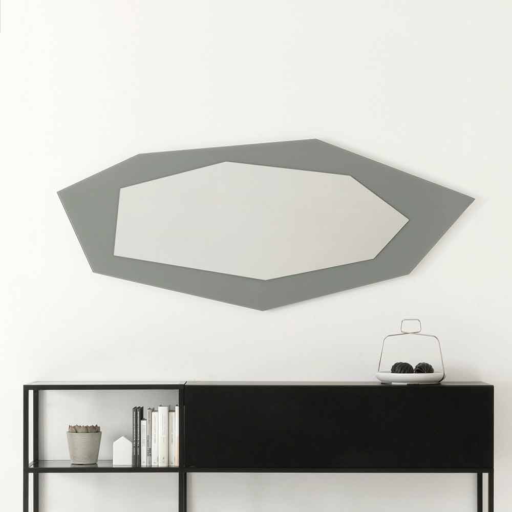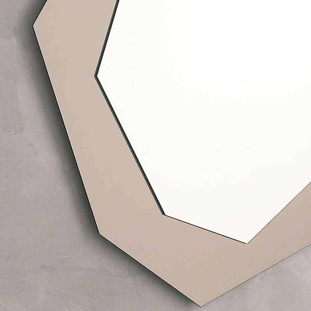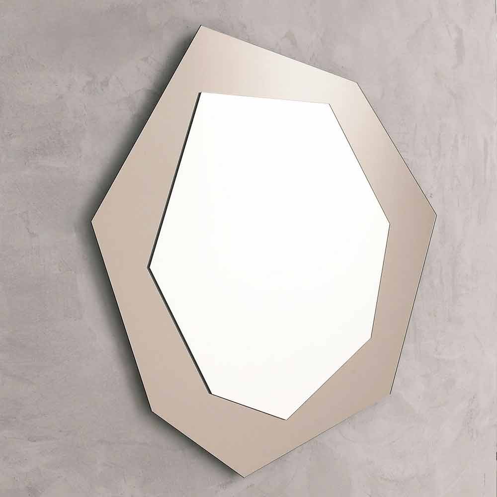Espejo de pared con forma fabricado en Italia con marco de cristal ahumado o bronceado. Un accesorio creativo y ecléctico que consigue transformar cualquier ambiente mejorando su percepción y actuando como un punto de luz fundamental dentro de la estancia, logrando así agrandar ópticamente los espacios. La originalidad de sus formas se combina con la elegancia de los acabados disponibles, creando así una solución de mobiliario capaz de llenar grandes paredes con un elemento decorativo único con un estilo refinado . Los dos tamaños disponibles permiten que este espejo responda a todo tipo de solicitud y necesidad, logrando enriquecer el mobiliario de cada estancia con un gusto moderno y demostrando así una extrema versatilidad.