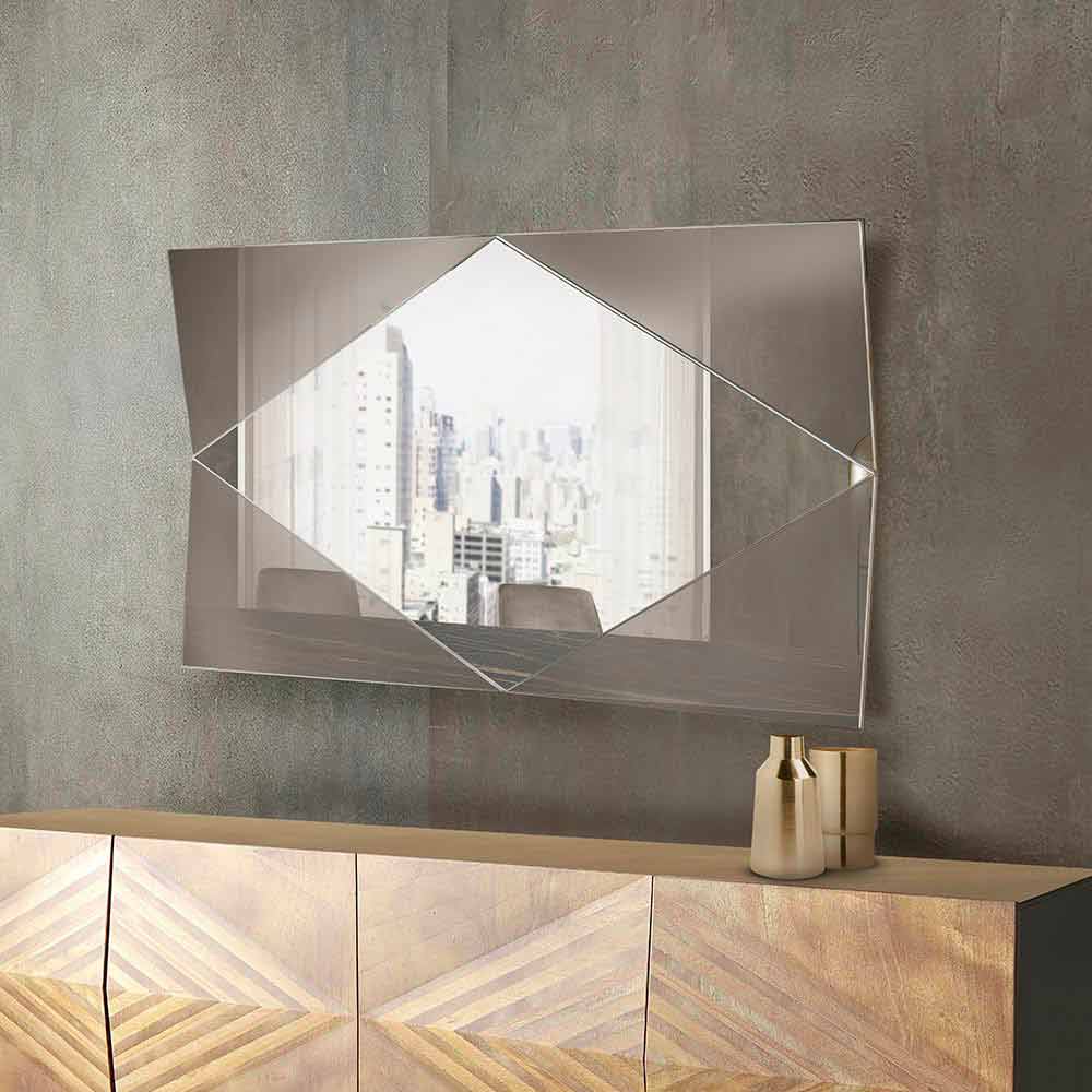 Espejo de pared íntegramente fabricado en Italia con estructura trasera en madera lacada completada con esquinas espejadas en acabado bronce o ahumado y centro plateado. Un diseño de excelencia que nace de una mezcla perfecta de creatividad e innovación, inspirándose en la experimentación de materiales, formas y acabados que no ponen límites. El resultado es un mueble que encarna toda la calidad y el valor del verdadero Made in Italy, dando vida a un espejo moderno y vanguardista al tiempo que ayuda a agrandar ópticamente los espacios dando más luz al entorno demostrando una excelente funcionalidad como así como un diseño refinado e innovador .