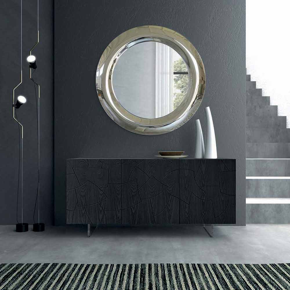 Espejo de pared made in Italy con espejo interioren cristalcon acabado cristal espejado y marco convexo también en acabado cristal espejado . El uso de líneas simples y esenciales combinadas con acabados extremadamente elegantes da vida a un mueble minimalista que no pasa desapercibido gracias a sus imponentes dimensiones y al uso de la forma redonda que otorga movimiento y armonía al interior del ambiente.