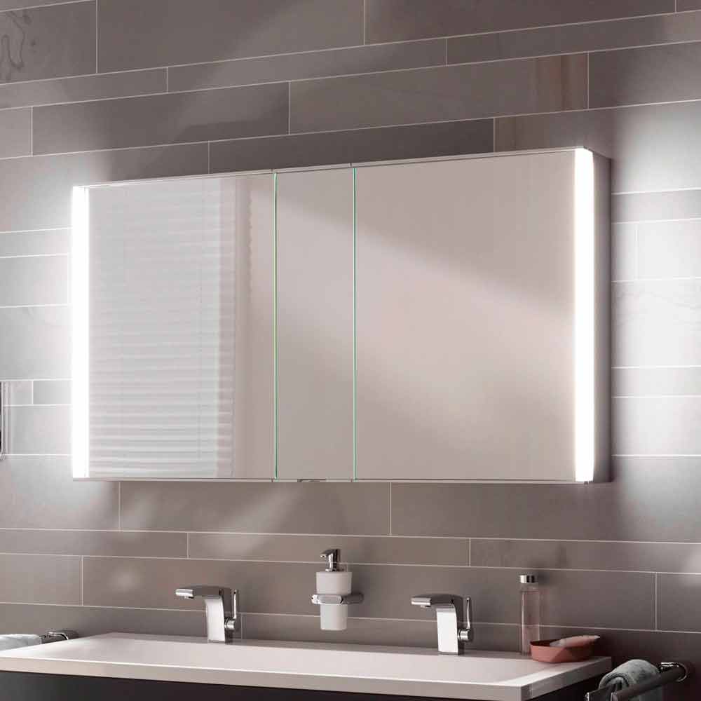 la iluminación LED que es fácilmente ajustable y regulable a través del interruptor sensor electrónico, creando así atmósferas únicas dentro de la habitación. Una vez abiertas, las 2 puertas giran alrededor de las bandas de luz, lo que permite obtener una iluminación óptima tanto cuando está cerrada como cuando está abierta.