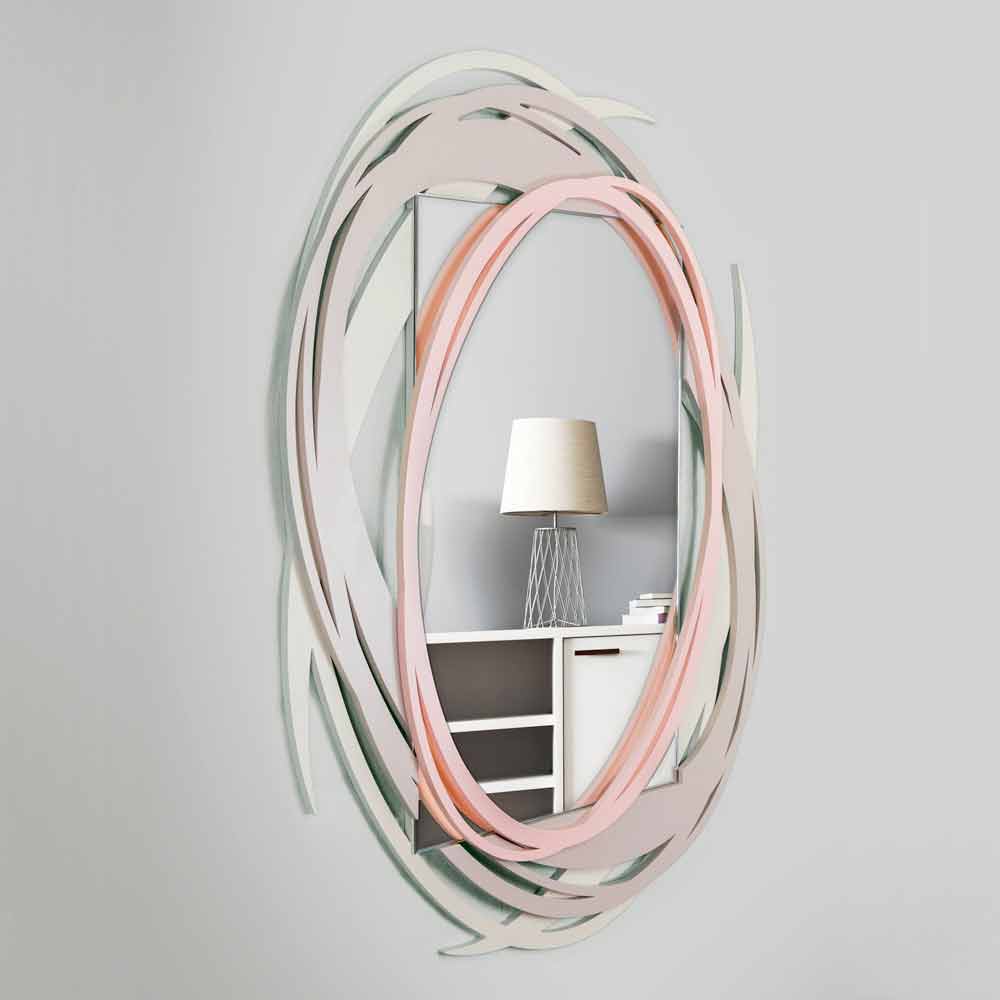 Espejo en madera lacada en tonos pastel. Las líneas sinuosas se adaptan a todos los estilos de decoración. Perfecta para la entrada y para el baño en la versión vertical. También se puede colgar en horizontal, por lo que es adecuado para el dormitorio .