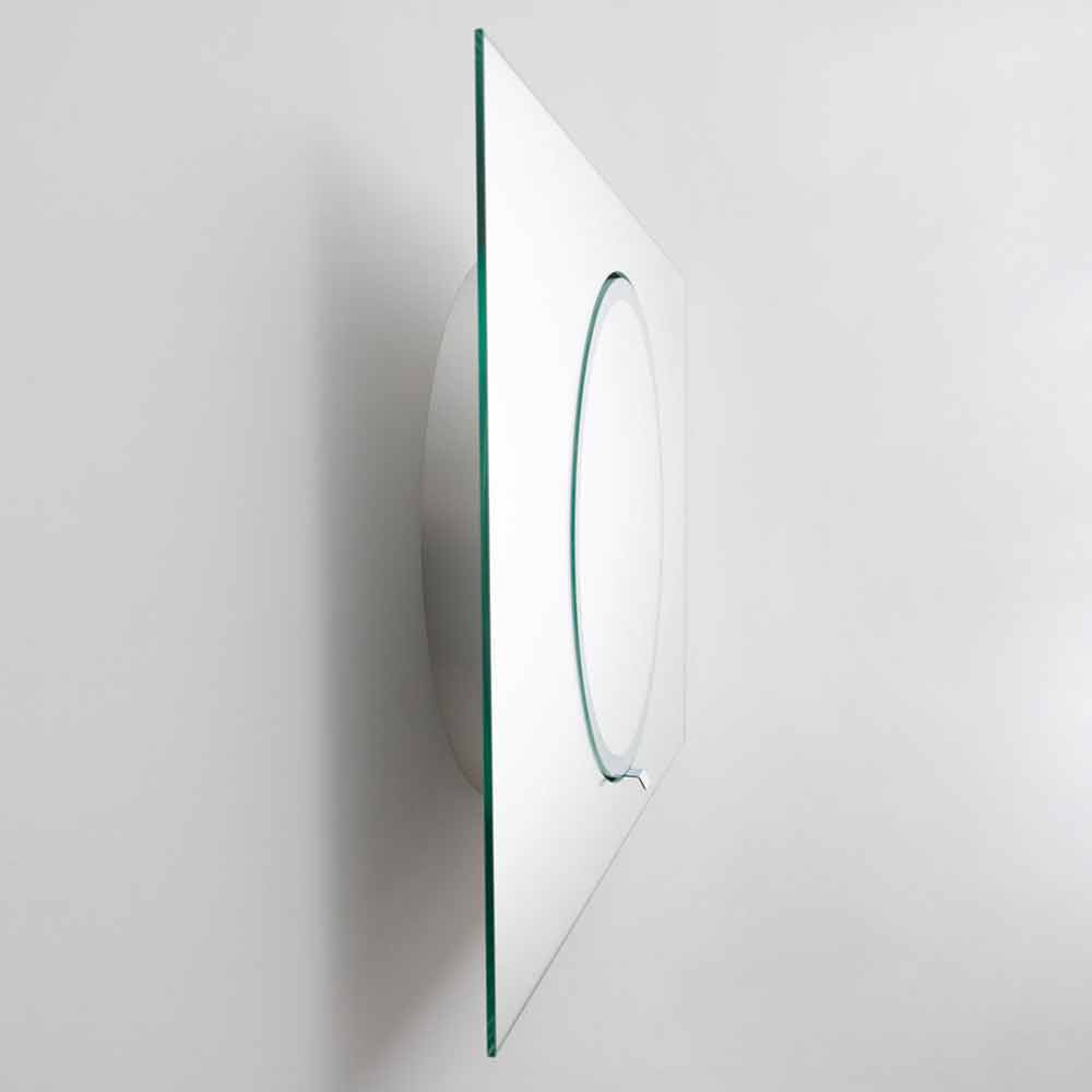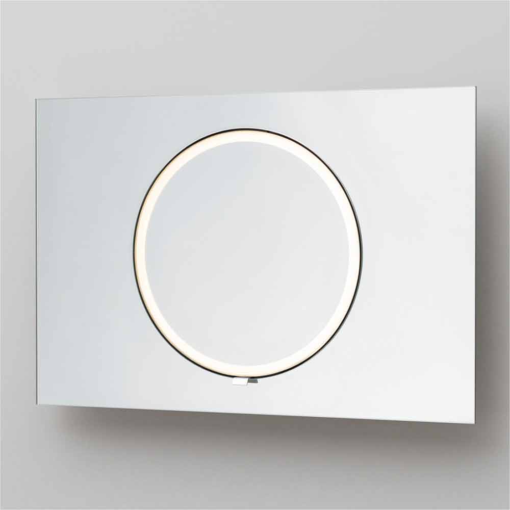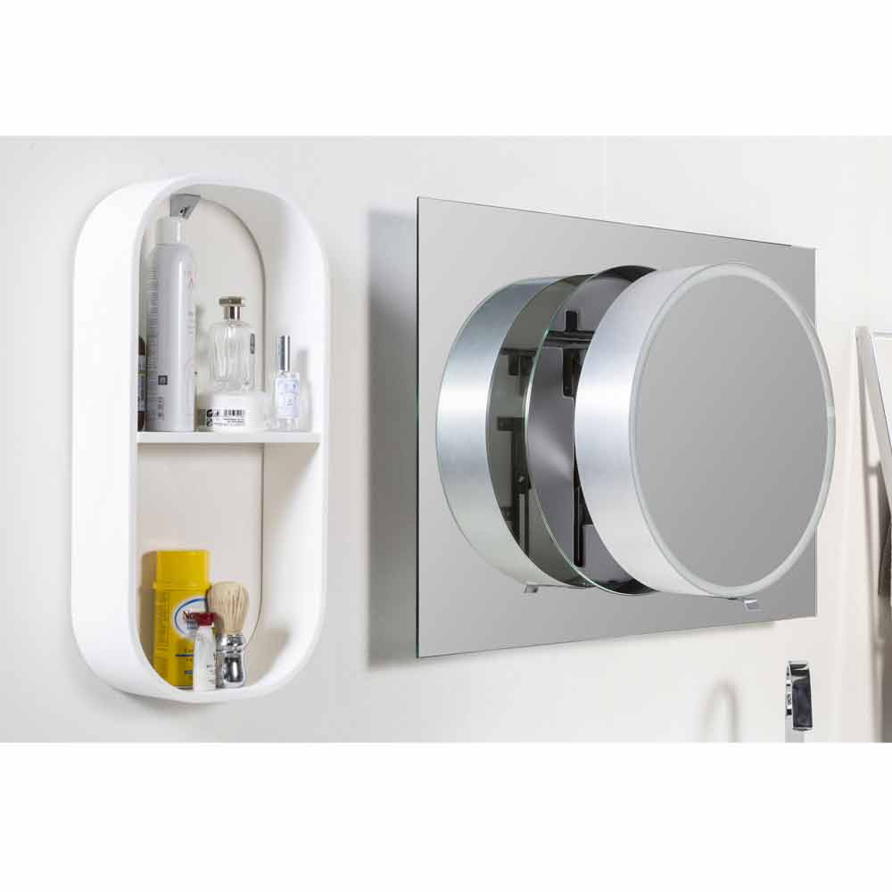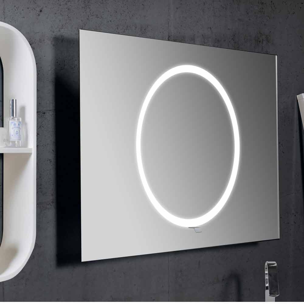 Espejo de borde pulido de 6 mm con estructura circular interna que se puede iluminar mediante LED y se mueve automáticamente. La parte circular se mueve hacia el usuario con un simple gesto, acercándose al rostro e iluminando la circunferencia. Montaje horizontal. Tornillos y fijaciones e instrucciones incluidas en el kit.