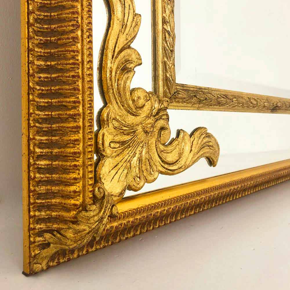 Este espléndido espejo es un triunfo de la elegancia clásica , una verdadera joya para el hogar que combina funcionalidad con puro esplendor estético . Su diseño rico e intrincado captura la esencia del lujo, con cada voluta y talla brillando con dorado finamente aplicado, recordando la opulencia de las casas históricas italianas.