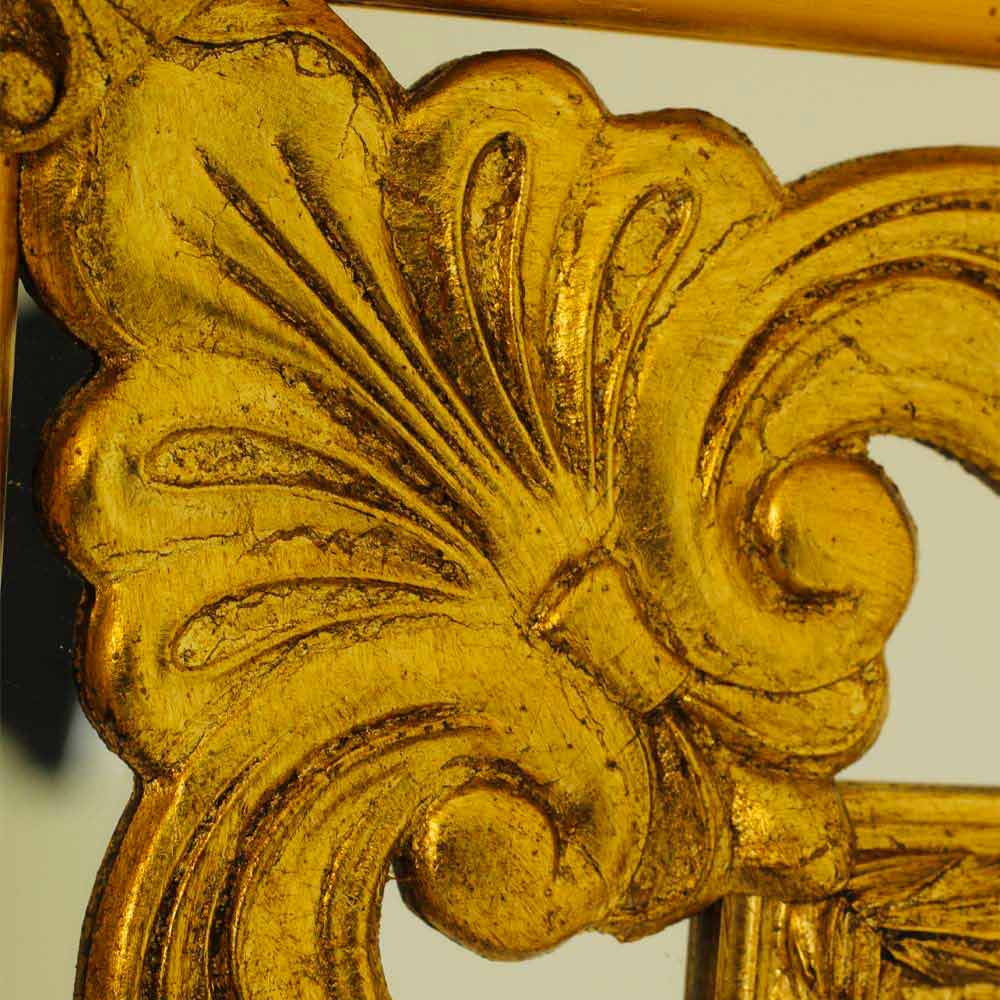El marco es una obra maestra de la artesanía , con detalles que celebran la belleza del diseño barroco, ofreciendo un toque de realeza y sofisticación a cualquier entorno. La calidad del Made in Italy es evidente en cada milímetro de su estructura, prometiendo no sólo un espejo sino una obra de arte que puede transformar una simple pared en un punto focal de extraordinaria belleza.