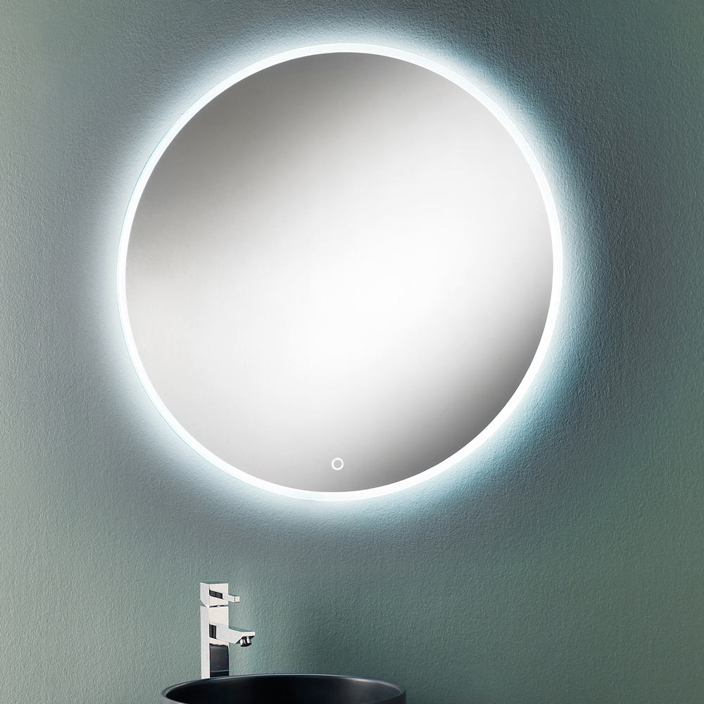 La peculiaridad de este espejo de pared redondo consiste en la retroiluminación LED con interruptor con sensor táctil integrado que completa el diseño moderno y original del complemento, caracterizado por un elegante y sofisticado borde arenado. La iluminación LED integrada de 4000k se extiende desde los bordes para una doble función: la de iluminación ambiental o la de iluminación directa en la zona del lavabo.