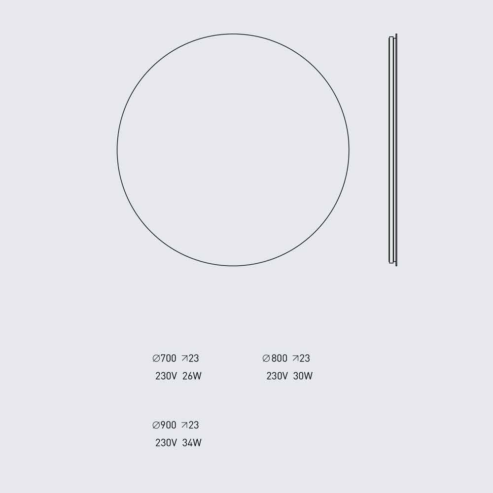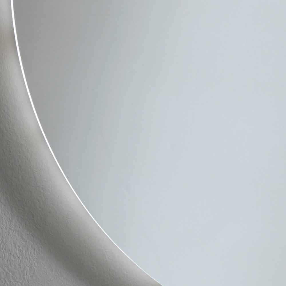 Espejo de pared redondo disponible en 3 tamaños para adaptarse a cada necesidad, para recrear un mueble de baño con un diseño moderno y refinado. Está retroiluminado con luz LED disponible en dos variantes, una más cálida y otra más natural. Hecho a mano en Italia.