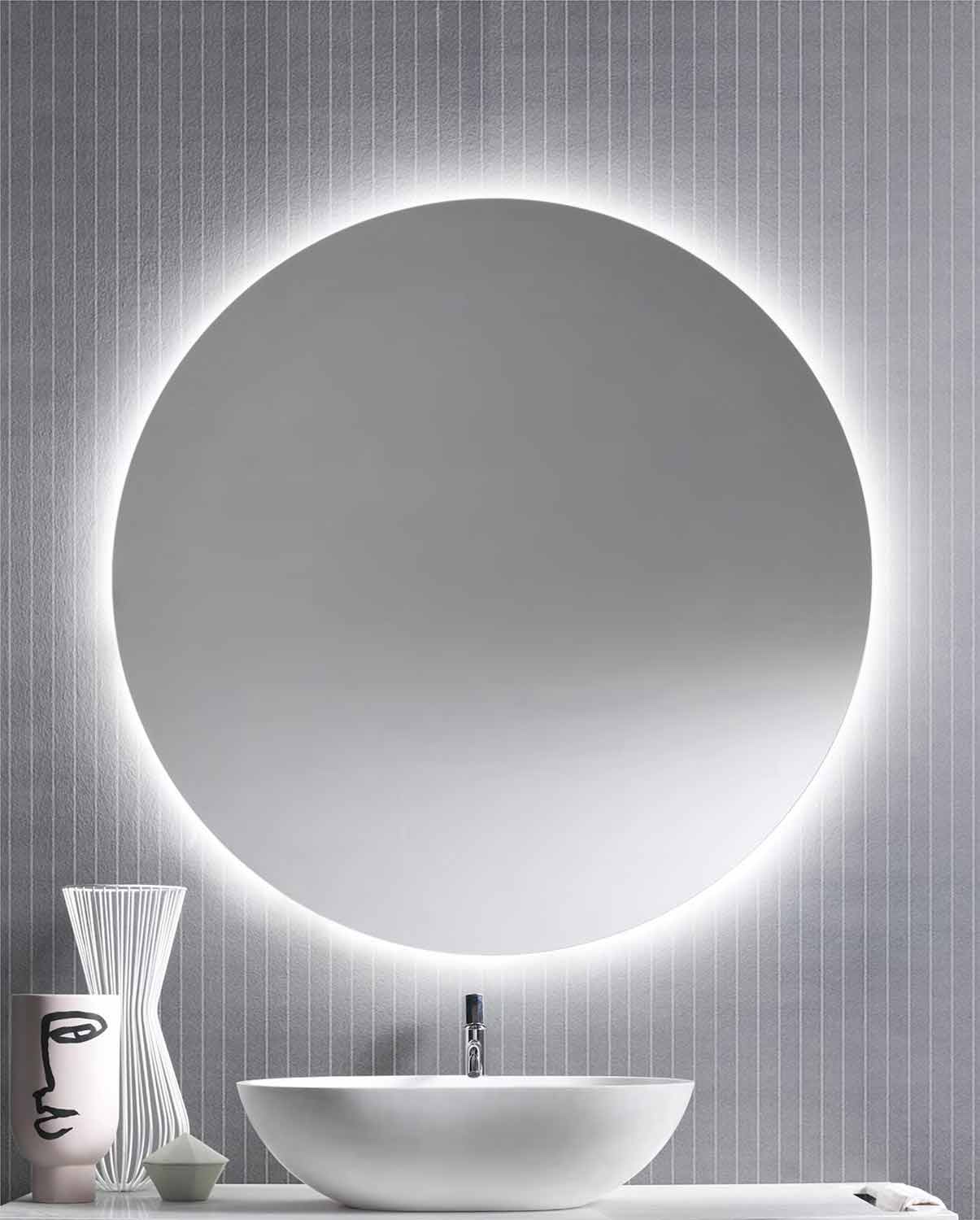 Espejo de pared redondo retroiluminado con luz LED Made in Italy.