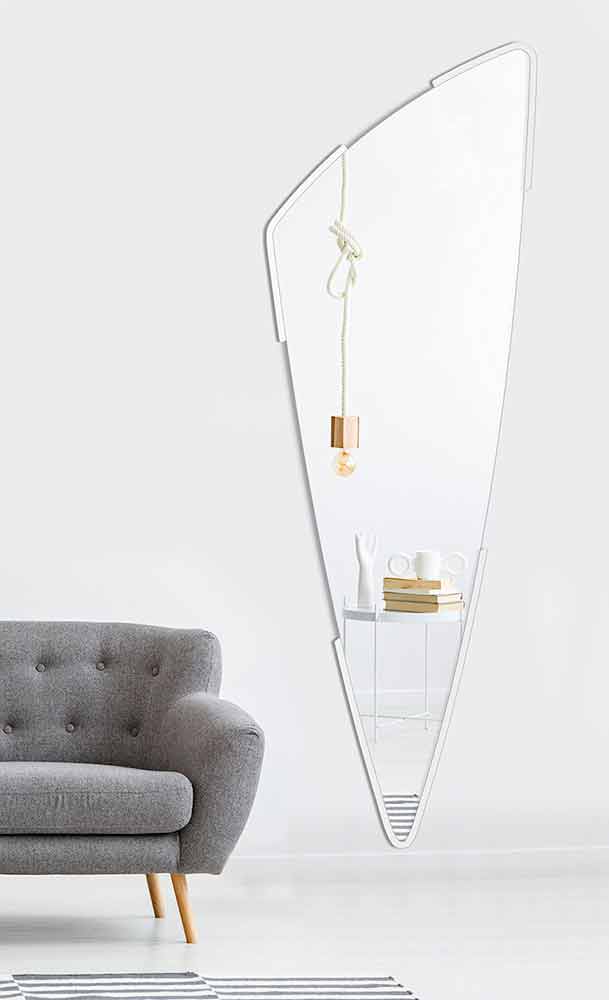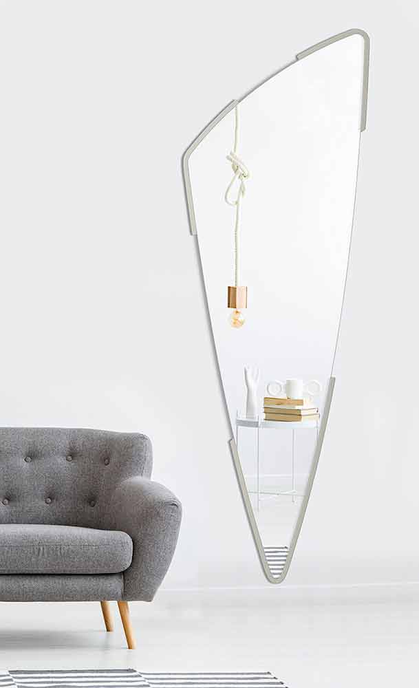 Espejo decorativo de pared moderno largo con marco minimalista en diferentes colores, diseño en forma hecho en Italia.