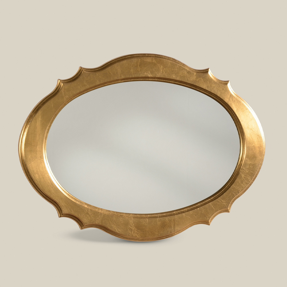 Espejo ovalado con marco de madera en pan de oro Made in Italy.