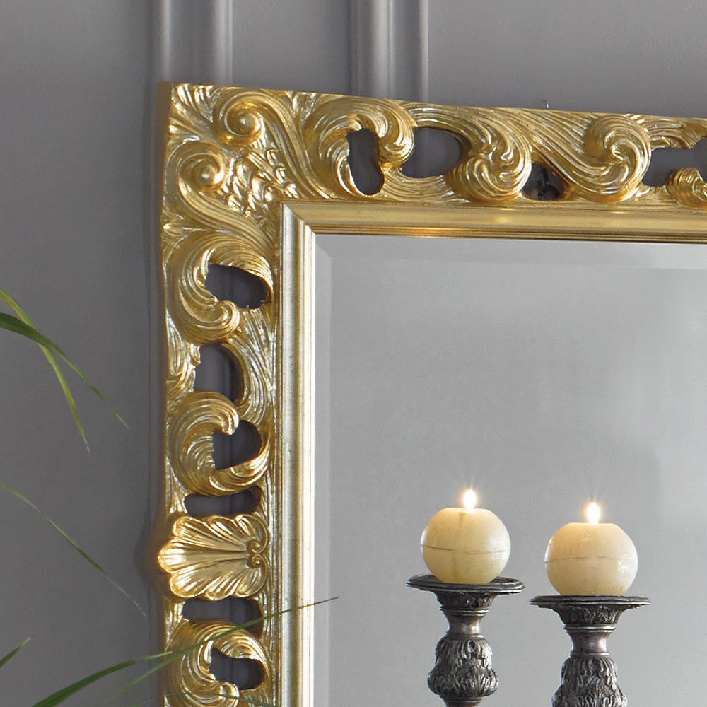 Espejo rectangular en madera clásica pan de oro Made in Italy.