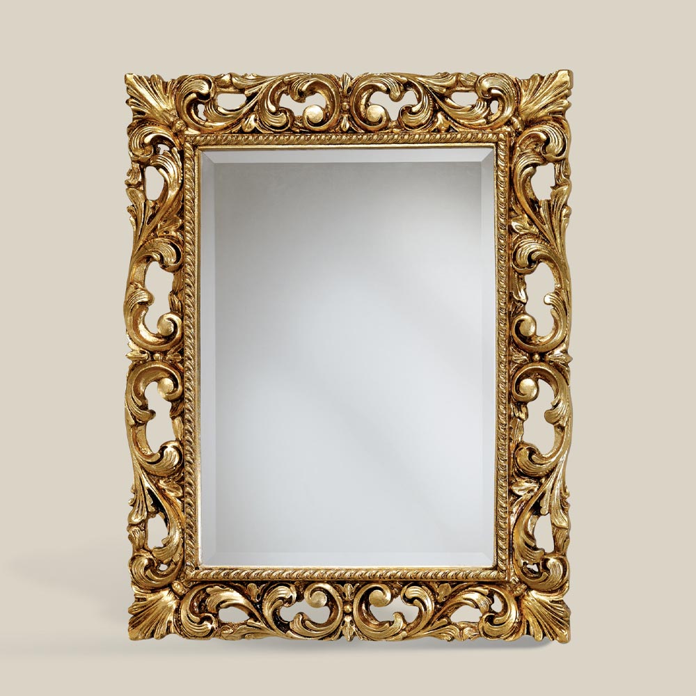 Elegante espejo de estilo clásico con marco rectangular acabado en pan de oro , diseñado para decorar cualquier ambiente con personalidad y originalidad. Un complemento único y refinado, completamente hecho en Italia y hecho a mano por expertos maestros artesanos , maestros del arte que terminan cada complemento con sabiduría y gusto por la elegancia. La producción se lleva a cabo utilizando materiales nobles y realizando el trabajoamano con el máximo cuidado y profesionalismo que distingue a los productos Made in Italy .