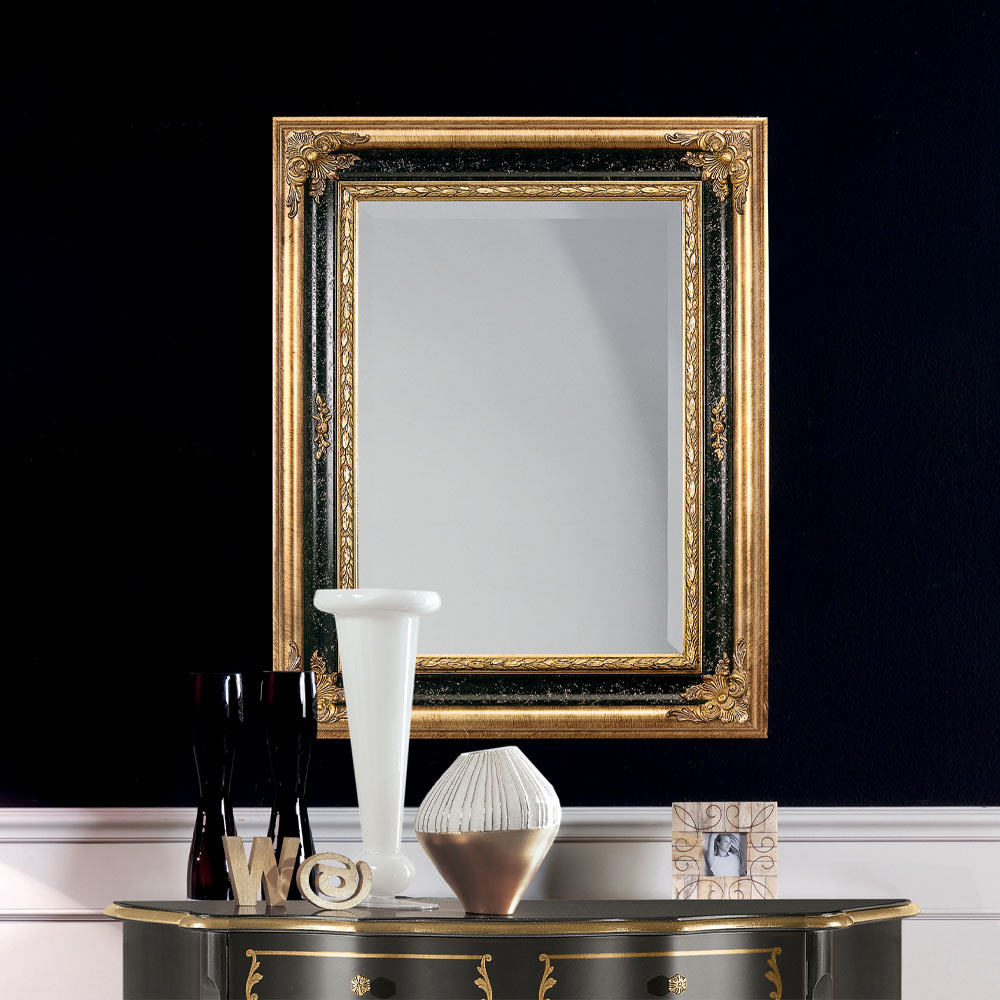 Espejo rectangular en madera de pan de oro y negro Made in Italy.