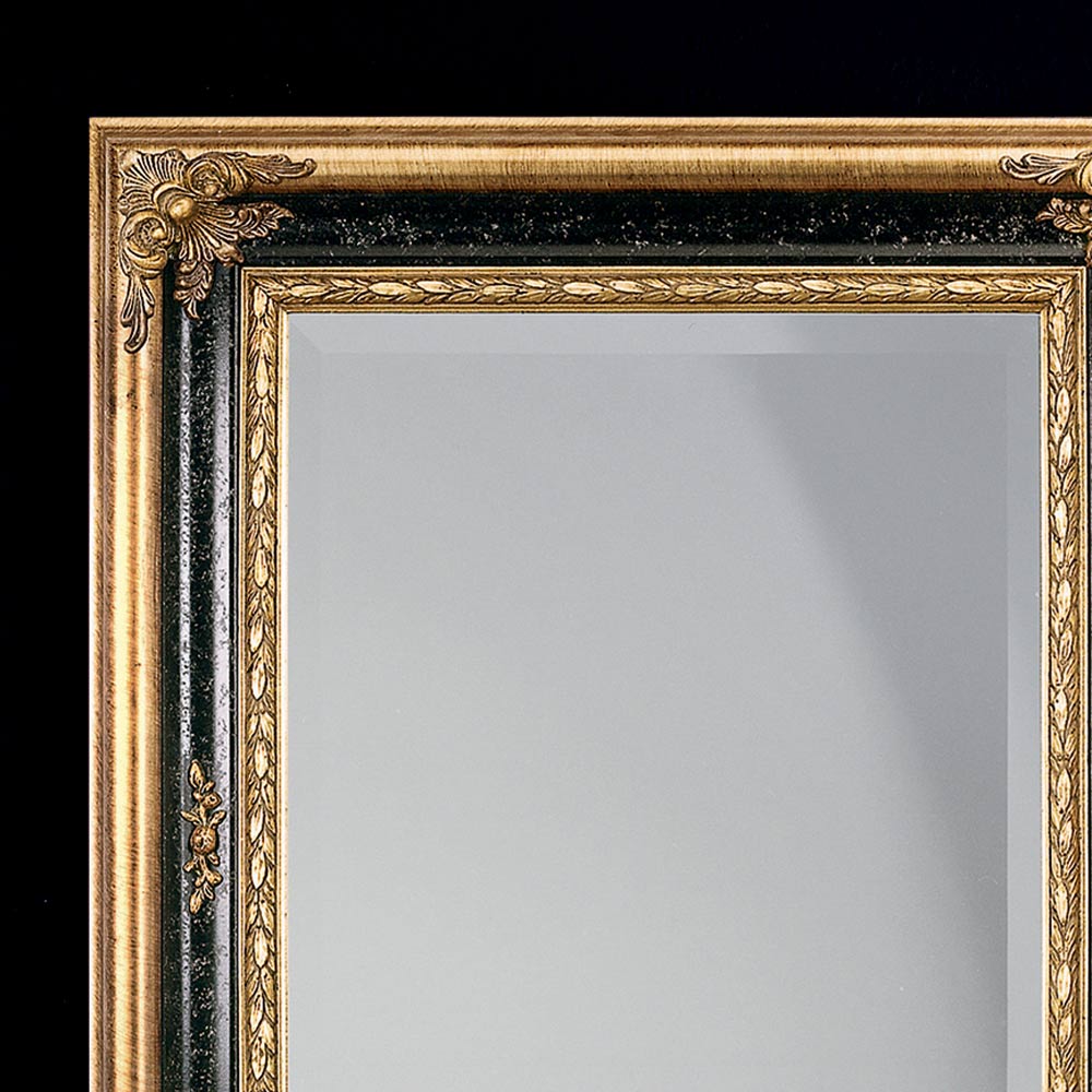 Elegante espejo rectangular con marco de madera decorado con pan de oro y laca negra.Gracias a su estilo clásico , este espejo es ideal para dar un toque elegante y lujoso a cualquier estancia. Un complemento único y refinado, realizado íntegramente en Italia por expertos maestros artesanos , maestros del arte que terminan cada complemento con sabiduría y gusto por la elegancia. La producción se lleva a cabo utilizando materiales nobles y realizando el trabajoamano con el máximo cuidado y profesionalismo que distingue a los productos Made in Italy .