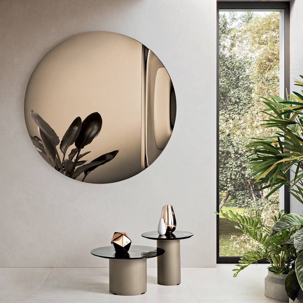 Gracias a su diseño, que equilibra la geometría y el movimiento, este espejo se convierte en un sofisticado elemento decorativo capaz de enriquecer la pared con discreción y elegancia, adaptándose perfectamente a ambientes modernos y contemporáneos.