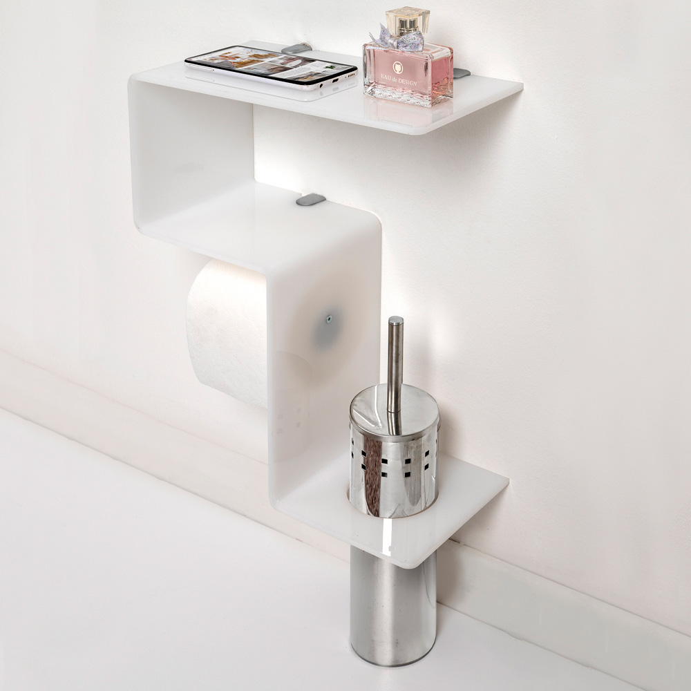 El portarrollos de papel higiénico encarna una estética refinada y una funcionalidad incomparable , todo en una sola pieza de decoración del baño. Este accesorio está fabricado íntegramente en plexiglás de la más alta calidad, lo que garantiza una resistencia y durabilidad sin concesiones. Su diseño, caracterizado por líneas fluidas y modernas, hace de este objeto no sólo una herramienta útil para el día a día, sino también un elemento de diseño capaz de distinguir tu baño con una nota de elegancia y luminosidad única. Los acabados de polímero virgen se integran perfectamente en cualquier contexto, aportando luminosidad y brillo que se mantienen inalterables en el tiempo, manteniendo el baño luminoso y acogedor. Su estructura práctica e inteligente ofrece la comodidad de tener todo lo que necesitas a mano, sin renunciar al estilo.