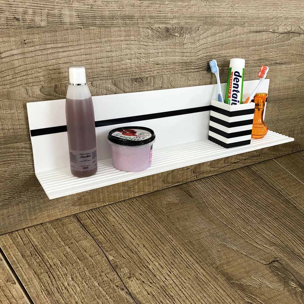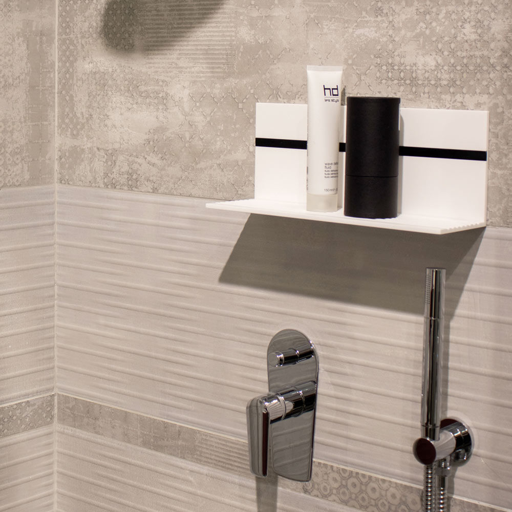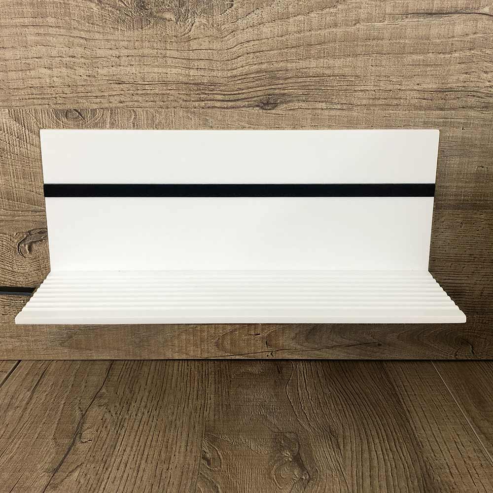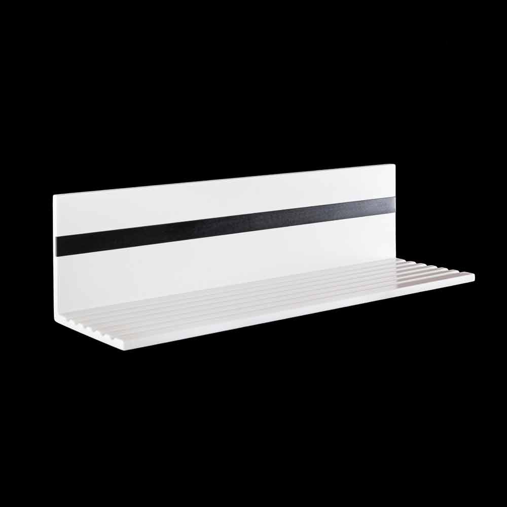Elija el estante de pared para un ambiente moderno y lujoso hecho completamente de Corian blanco o blanco con inserto negro, un material higiénico con líneas esenciales.