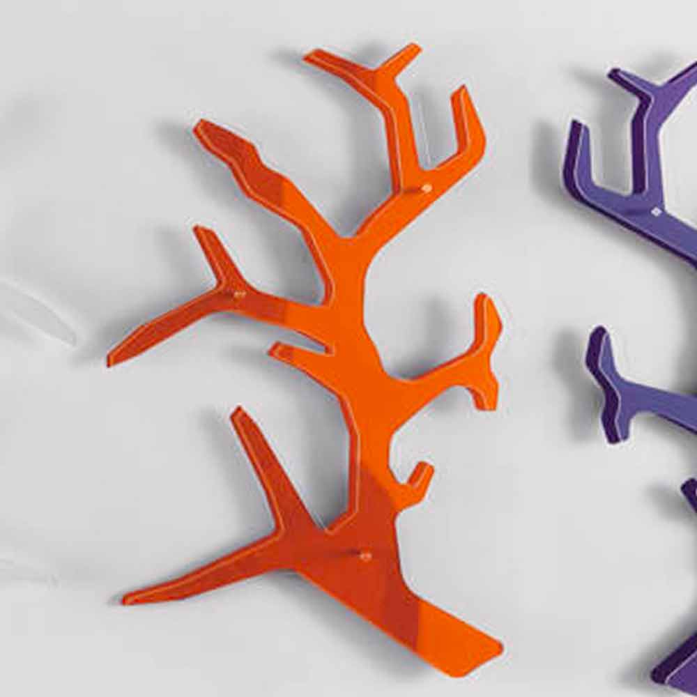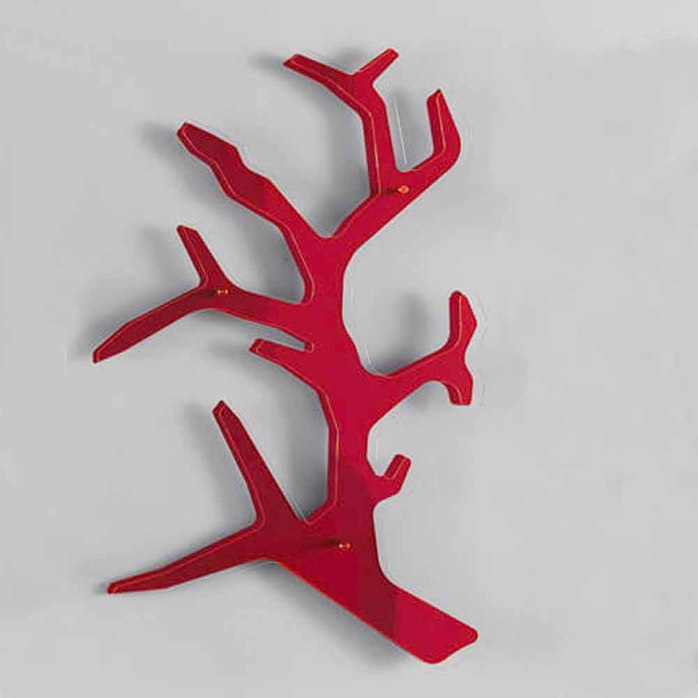 Estantería de pared original fabricada en Italia con forma de rama con una estructura formada por dos placas de plexiglás (una transparente y otra coloreada).